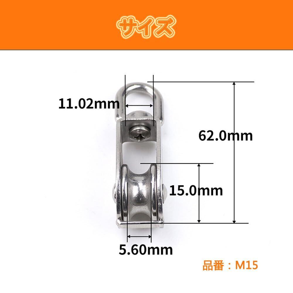 Yandong 滑車 M15 ステンレス プーリー 耐荷重35kg 小型ローププーリー SUS304 滑車ローププーリー 貨物輸送 スイベル式 カラビナ付き (2個セット)
