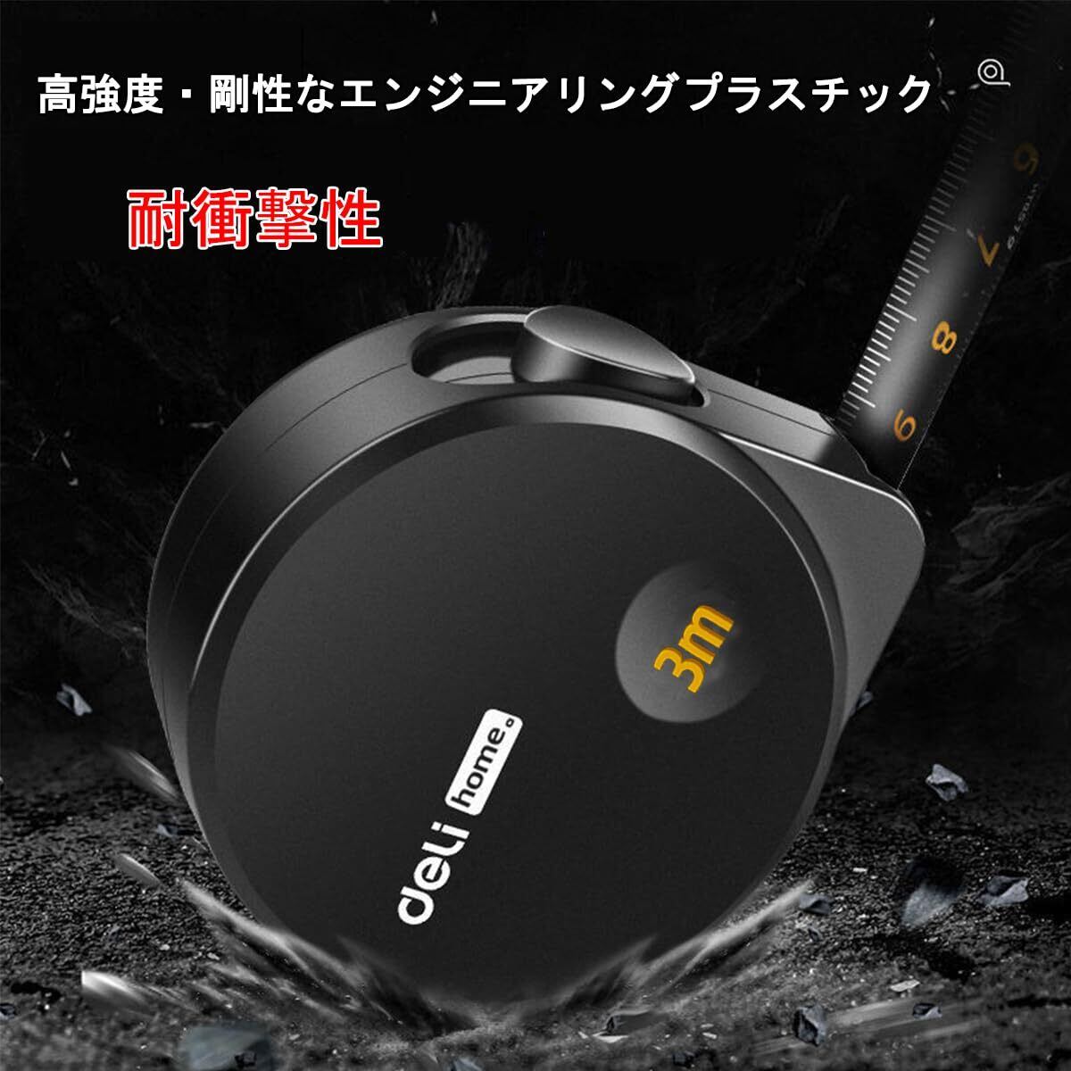 Deli メジャー・巻尺 スチール製巻尺 仕様3mX16mm 文字が大きく目盛が見やすい 手切りを防ぐ 高精度 高硬度の工学用巻尺 防水性 耐摩耗性 耐落下性 現場での測定 室内・家具サイズの測り、図面作成 DIYプロジェクト 測定ツール 家庭用巻尺 コンパクト (黒ブラック,3mX16mm)