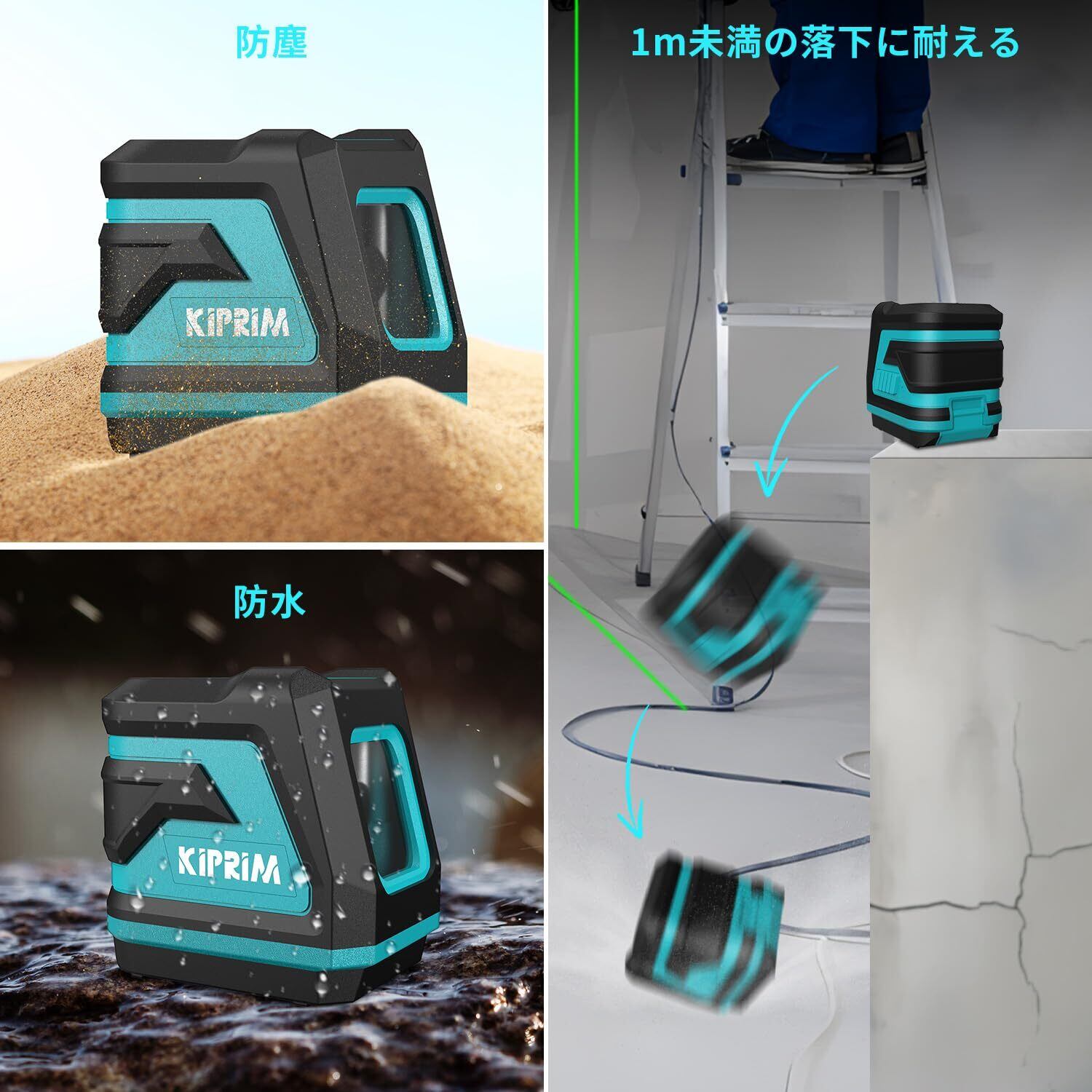 Kiprim レーザー墨出し器 墨出しレーザー 視認性向上、明るさ調整可能、手動/自動水平/パルスモード、レーザー安全基準:クラス2 電池とキャリングポーチ付属 日本語説明書付き LV8