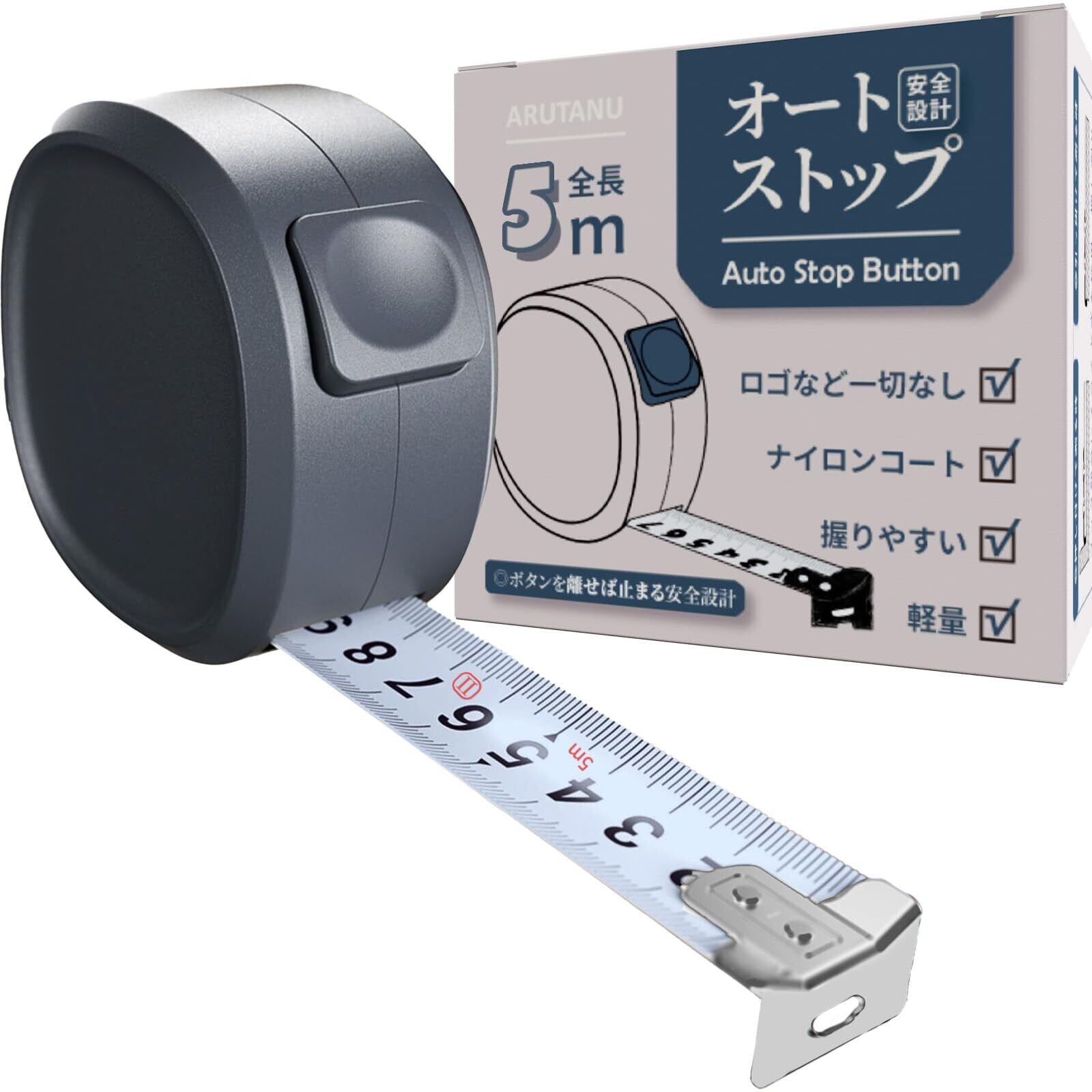 【オートストップ・安全設計】引くだけでストップ! 押すだけで巻き取り!従来品のスライド式ボタンのように、押し込み不足でメジャーテープ戻り事故なし!