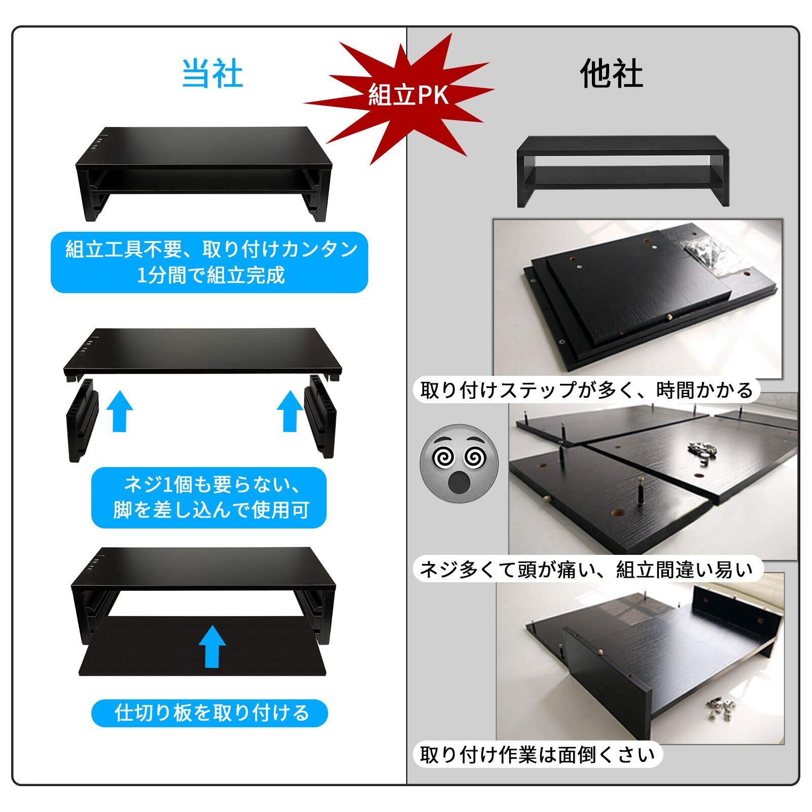 Point 1:モニター台はABS/合成繊維板で作られます。この素材はコストパフォーマンスが優れて、環境にやさしいです。耐荷重は25kgです。サイズ:42.5x23.5x14.5cm、天板の厚さは12mmです。