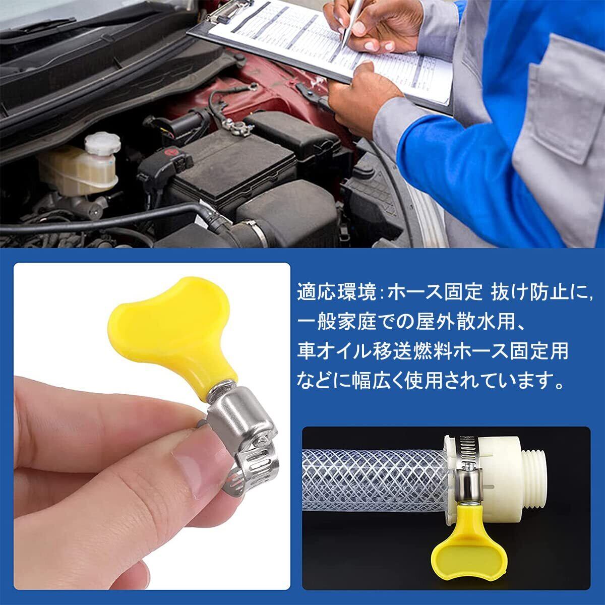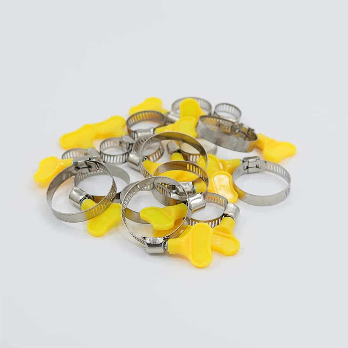 サムコス ホースバンド ステンレス製 散水ホース固定用 工具不要 つまみタイプ 黄色 強力固定 外径:16mm~25mm 作業簡単(8個セット)