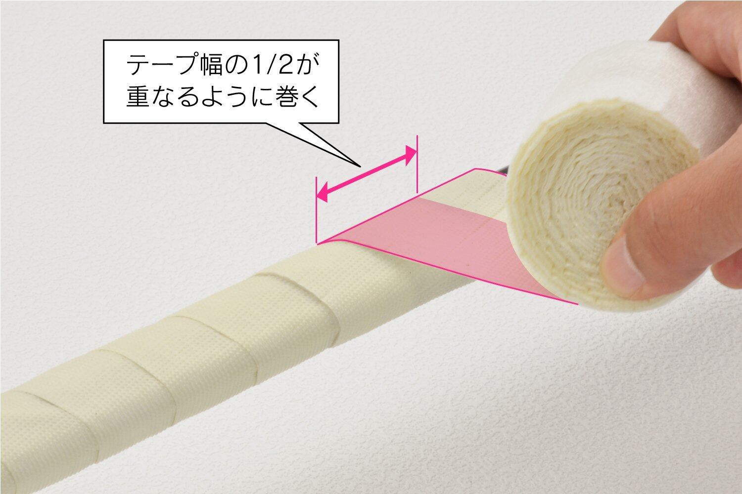 ◆発泡面を内側にして、テープ幅の1/2が重なるように巻いてください
