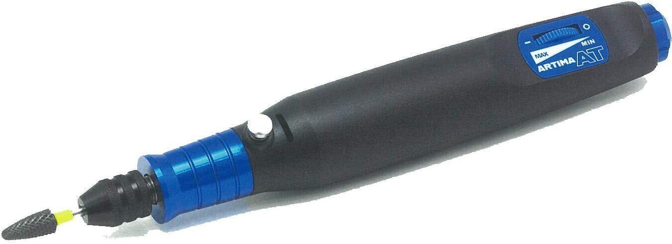 コンパクトで美しいボディながら、今までのハンディルーターに比べ圧倒的な高 トルクを実現、また高精度なチャックで回転精度が高く、どんな作業もストレスなく進めることができます。 アルティマオートトルクの6つの特徴 1. 低回転でも粘り強くしっかり回転する高トルクで、樹脂の切削研磨に強い 2. 高精度のチャックで回転精度が高く、繊細な作業も楽々 3. すぐに使える先端工具3 種類同梱(ジルコニアカッター、ダイヤモンドポイント、研磨砥石) 4. 全長約16cm、本体重量は約82g という小型軽量ボディ 5. 1,800 ~ 12,500 回転/分 無段階変速で多様な作業に適合 6. 精密ベアリング使用により高い静音性を実現