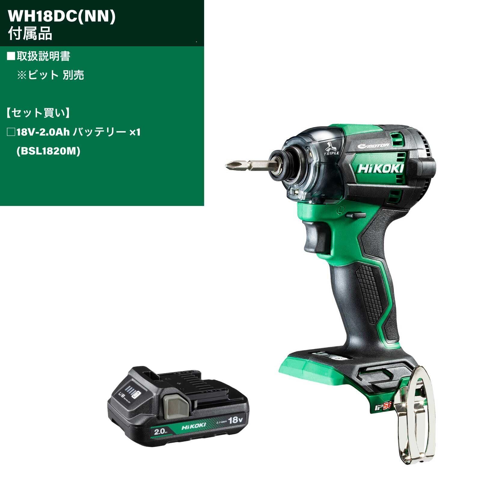 【セット買い】HiKOKI(ハイコーキ) 18V充電式インパクトドライバー WH18DC(NN) + 18V蓄電池 BSL1820M
