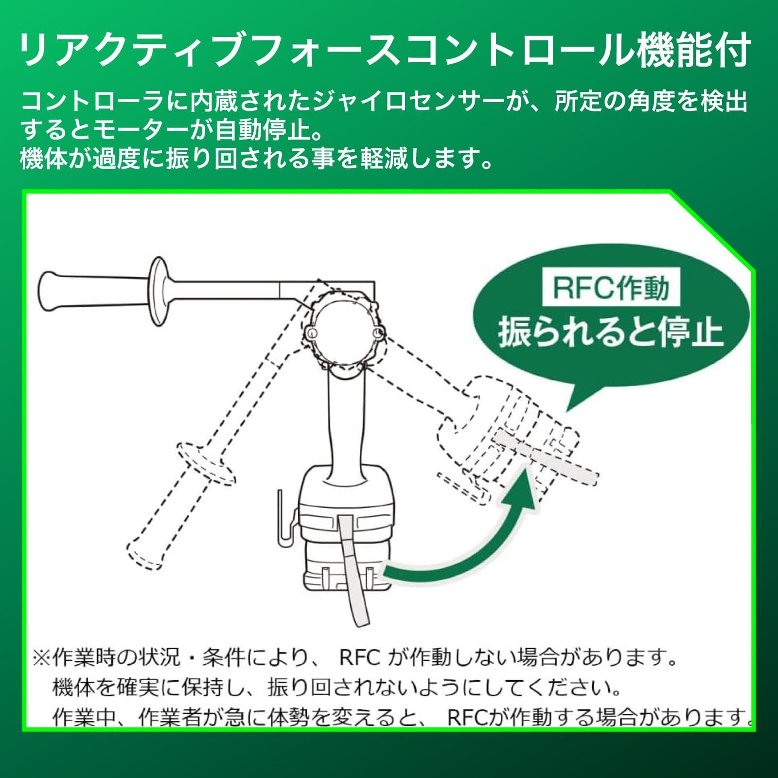 リアクティブフォースコントロール(RFC)搭載。先端工具の嚙み込みを感知し機体が振られる前に出力を停止します。
