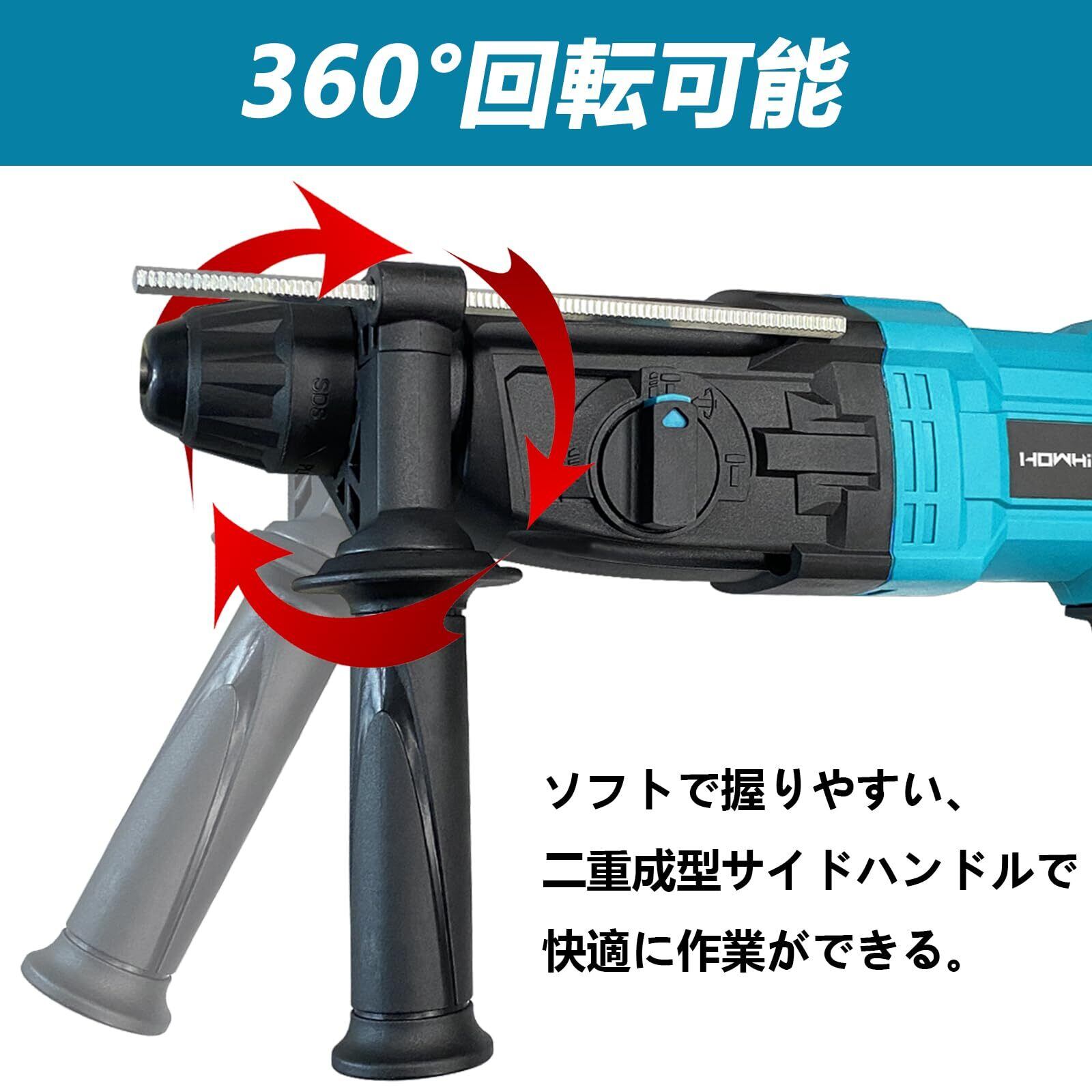 Howhite SDSプラスハンマードリル 110V 1100W ハンマードリル 電動ハンマー 無段階変速 3モード切替 軽量 低振動 コード式 ハツリ 穴あけ コンクリート26mm/鉄工13mm/木工40mm 収納ケース付き 日本語取扱説明書付き