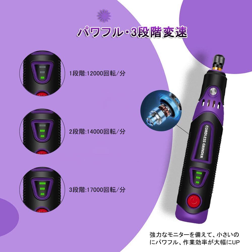 ミニルーター 86pcs コンパクトルーター 3.6V 三段階変速 17000RPM高速回転 リューター USB充電式 コードレス 電動ルーター 研磨/彫刻/つや出し/切断/穴あけ/汚れ落とし ペン型 軽量化 コンパクト DIY 軽作業に向け 専用収納ケース 日本語取扱説明書付