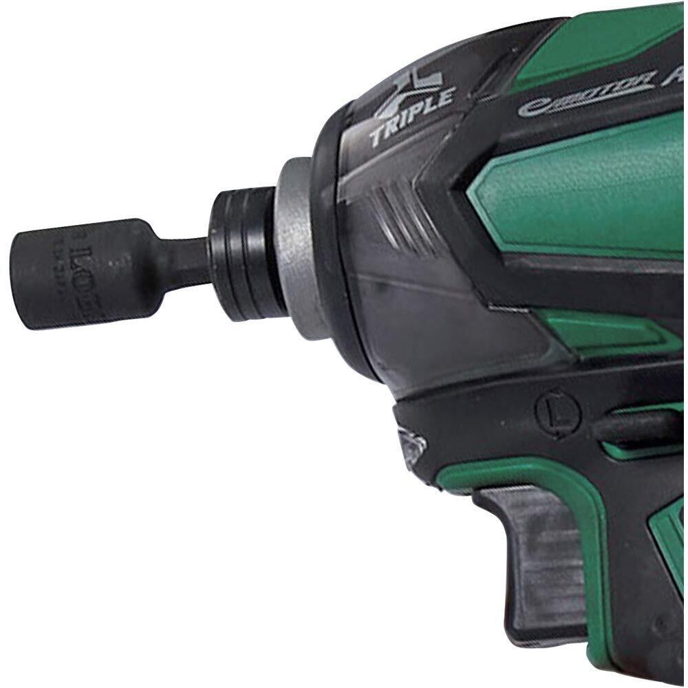 18Vインパクト対応です。電動工具とのジョイント部は9.5mmと14mm兼用のダブル溝になっており、各種電動ドリルに取り付け可能です。強力なマグネット付きで、へクスタイプのねじ・ボルトを確実に保持、作業効率がアップします。