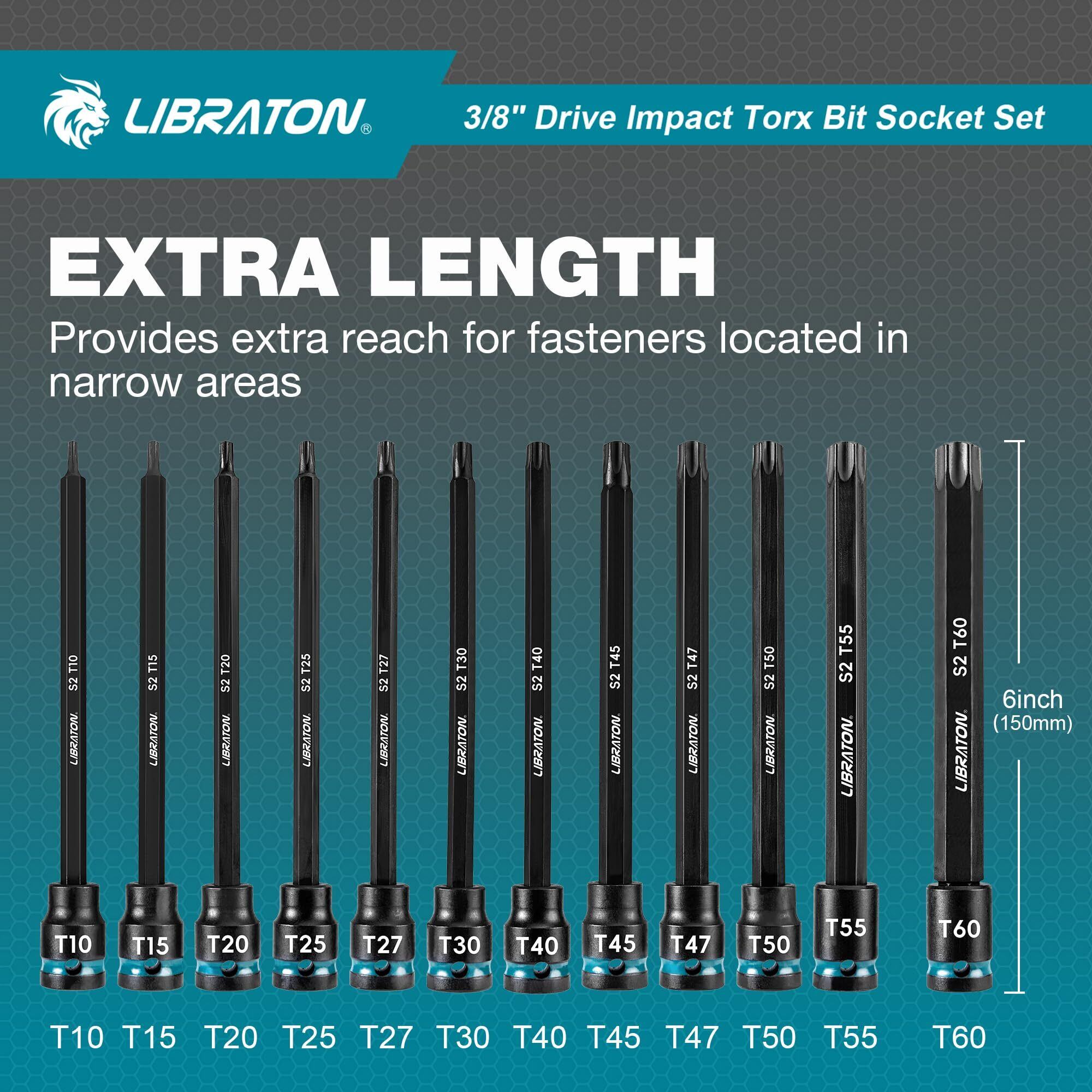 LIBRATON トルクスビットソケットセット 差込角 3/8インチ(9.5mm) S2鋼 星型ビットソケットセット T10-T60 インパクト用 トルクスソケットセット 24点セット