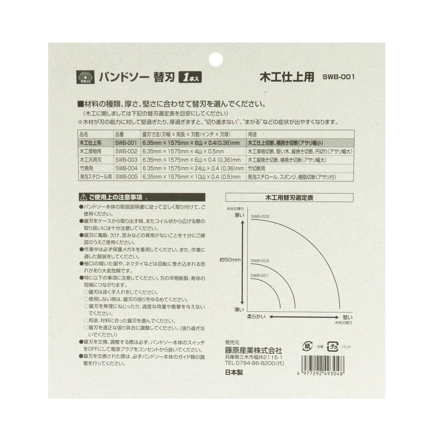 SK11(エスケー11) バンドソー替刃 木工仕上用 SWB-001 ブラック