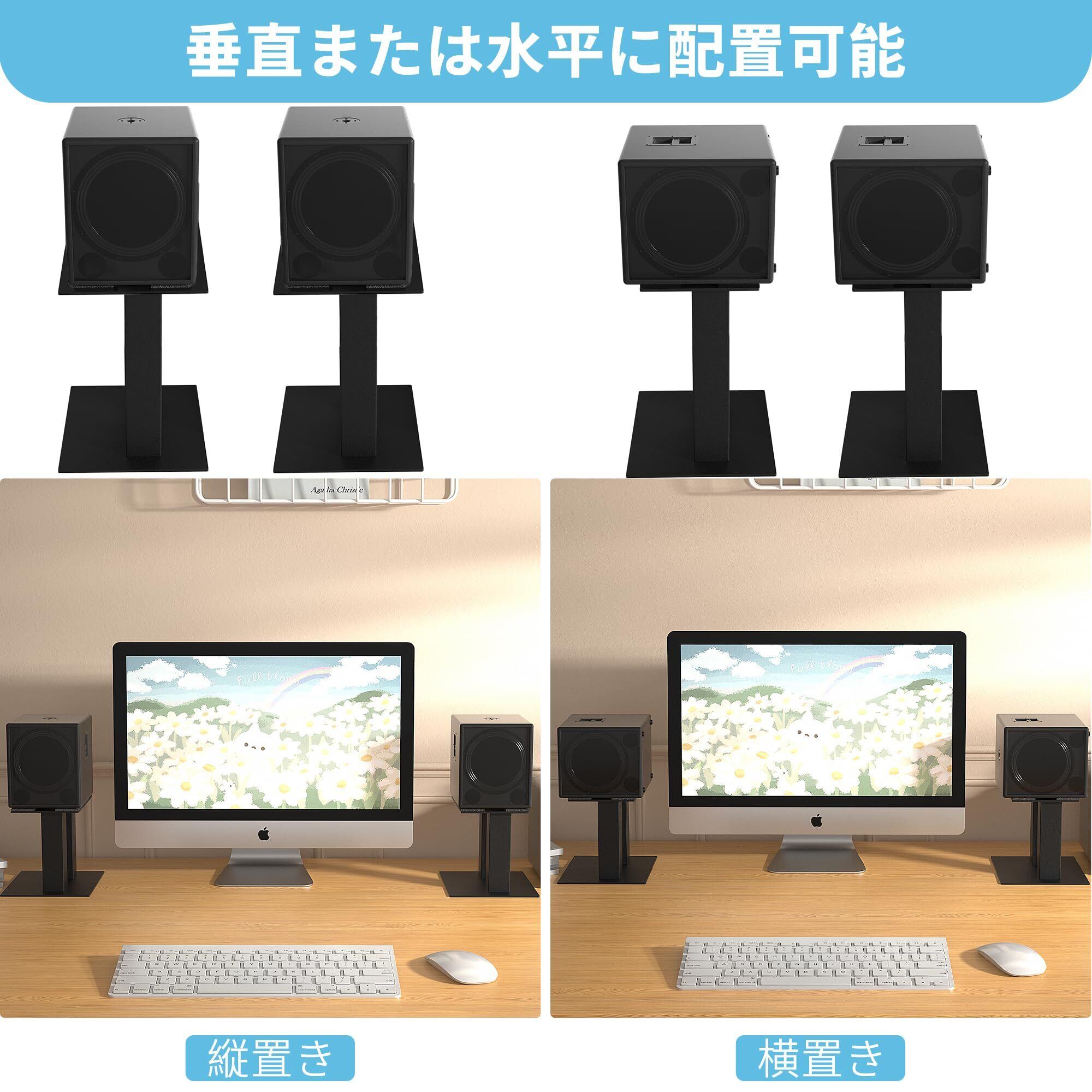 BQKOZFIN スピーカースタンド 卓上 小型 金属製 天板:240mm×210mm 高さ:250mm 耐荷重30kg [2台1組]