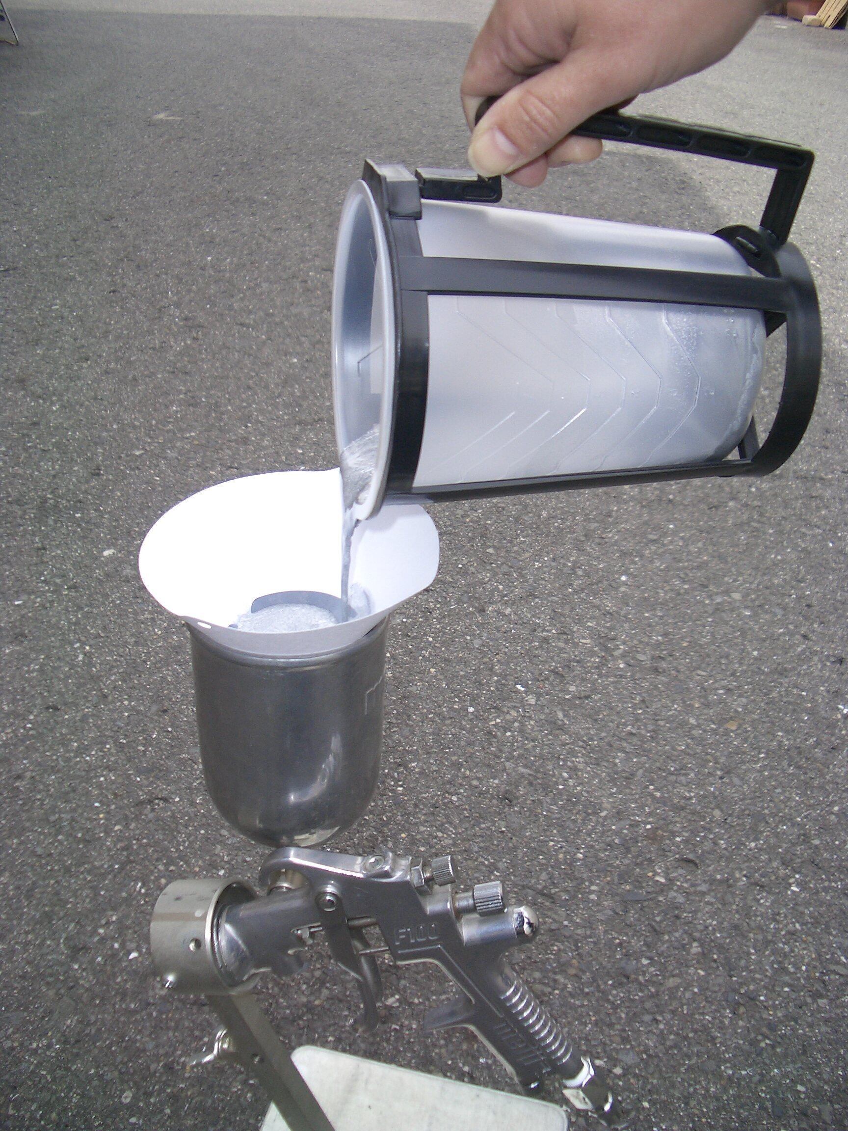 メッシュの隙間が真四角なので塗料のろ過が早い。