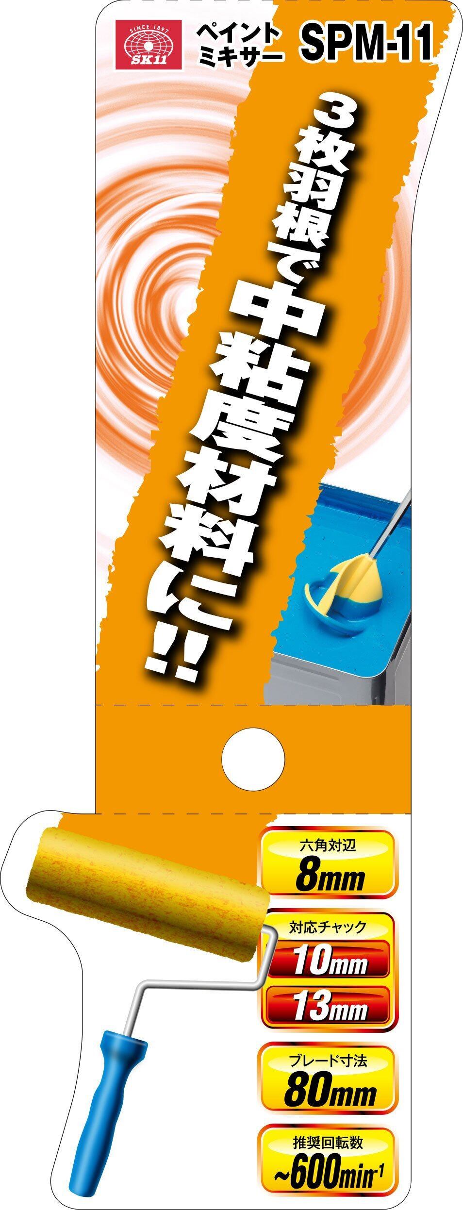 SK11(エスケー11) プラスチック製 ペイントミキサー 羽根径80mm SPM-11
