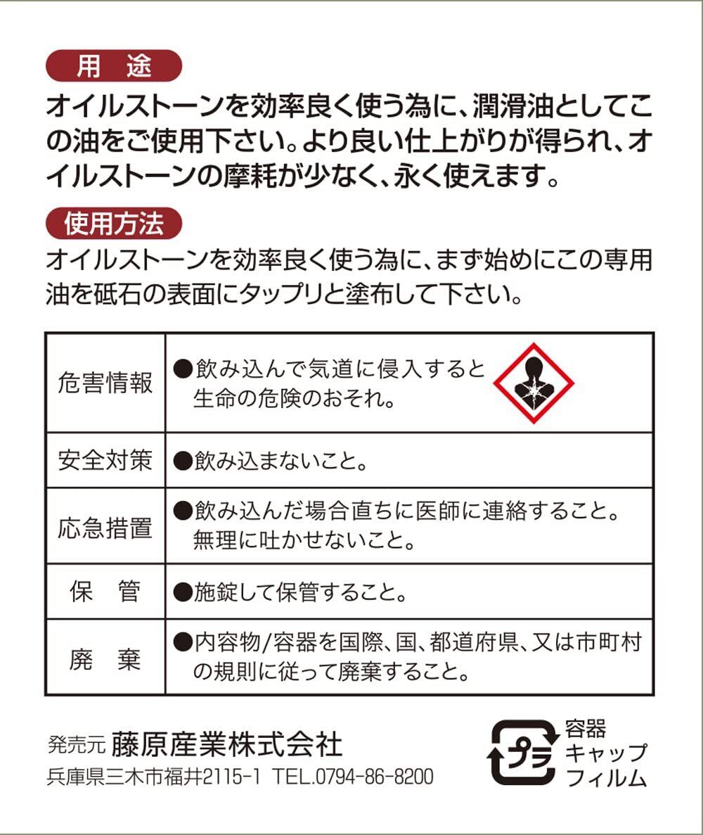用途:オイルストーン(油砥石)を効率良く使う為の潤滑油