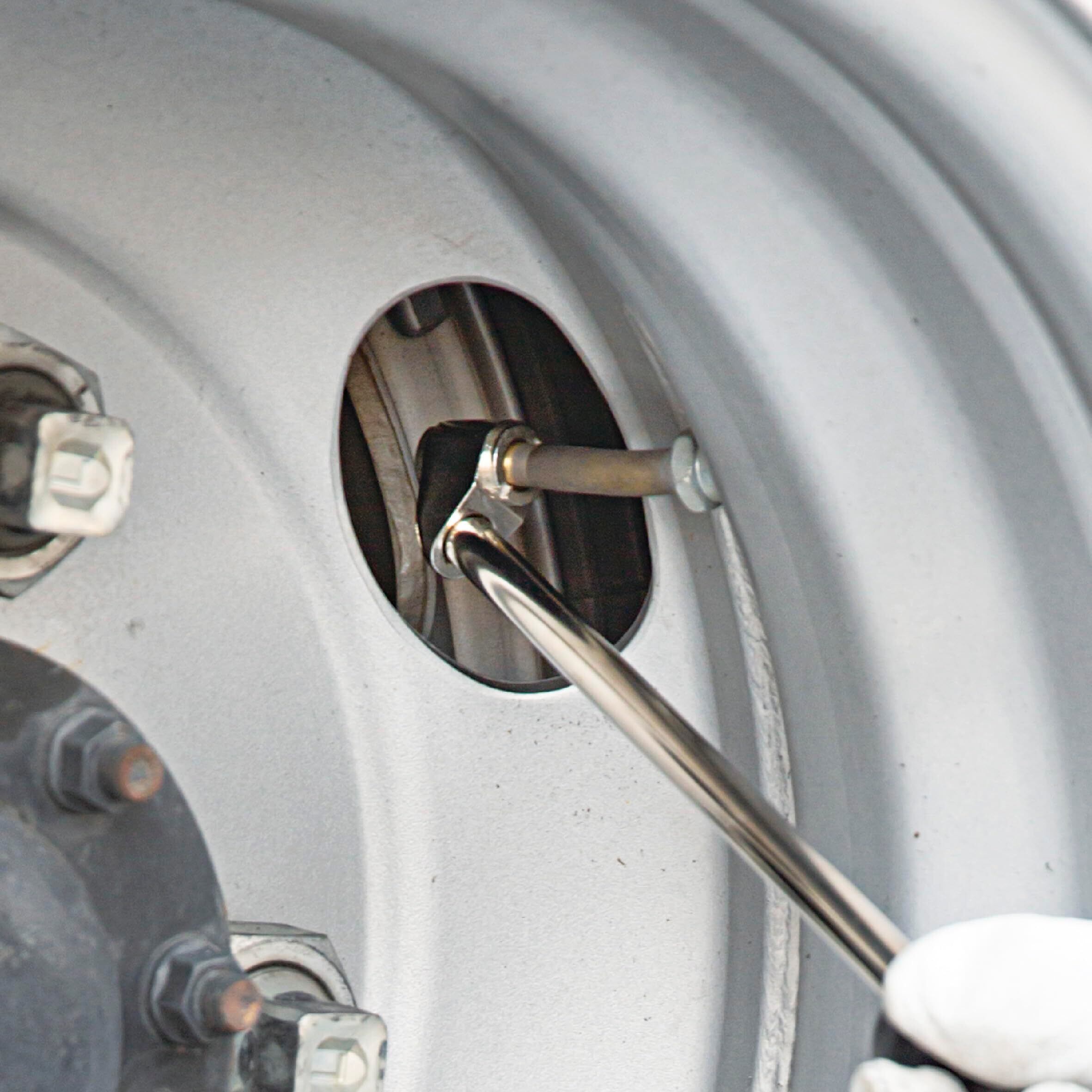 トラック、自動車、トラクター等奥まった箇所の空気入れに