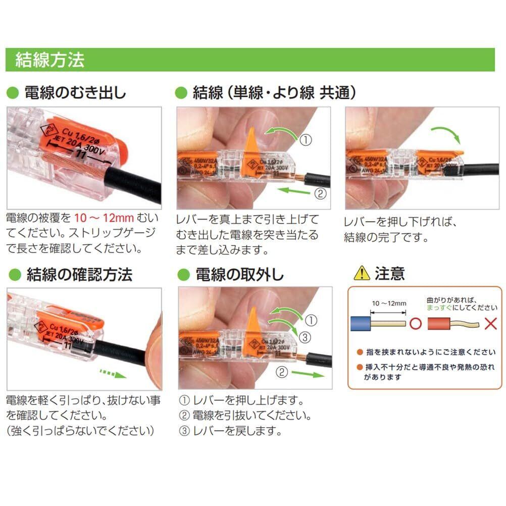 ●適合電線(電線被覆外径φ4.0mm以下):単線 φ0.5~φ2.0mm、IV7本より線 0.2~2.5 mm2、より線 0.2~4.0mm(※電線の種類、条件等により使用できない場合があります。