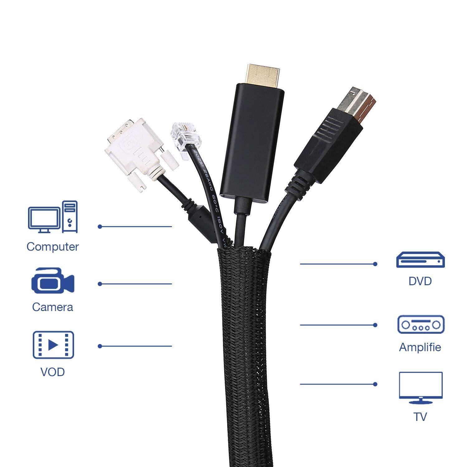 JOTO ケーブル収納スリーブ 長さ約8M 直径1.3cm DIY切断可能 PET素材、家庭用/オフィス用 -ブラック