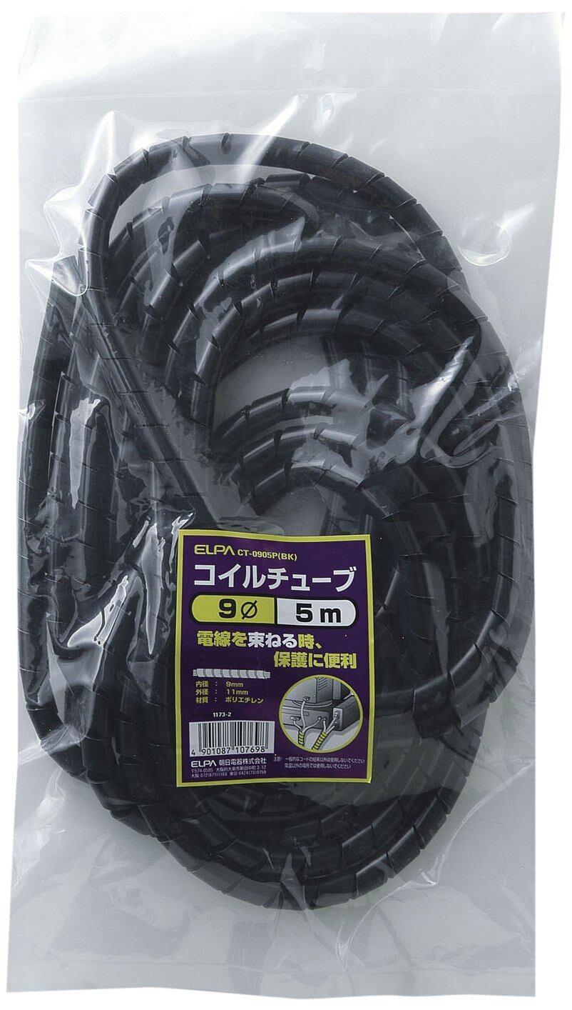 エルパ (ELPA) コイルチューブ 配線 まとめる 保護 コイル径/9mm 5m ブラック CT-0905P(BK)