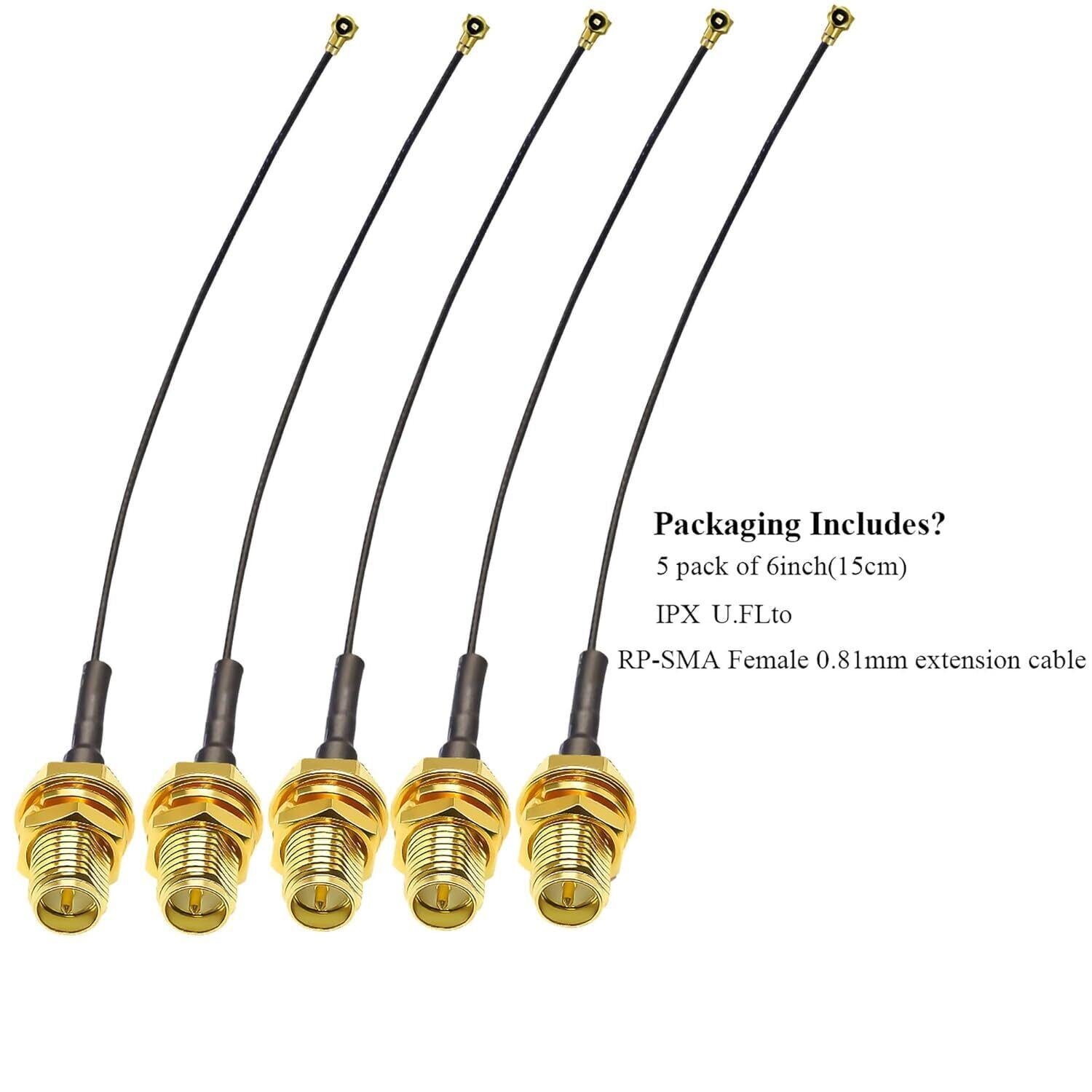 パッケージ内容: 6インチ 0.81mm RP-SMA メスから UFL/U.FL/IPX/MHF4 同軸ケーブル 5 本 (コネクタ 1: RP-SMA メス コネクタ、コネクタ 2: IPX コネクタ、ケーブル タイプ: 6インチ 0.81mm 同軸ケーブル)