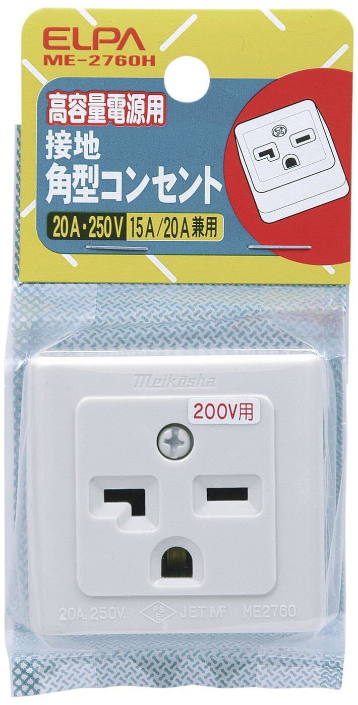エルパ (ELPA) 接地角型コンセント コンセント 配線 250V 15A/20A ME-2760H