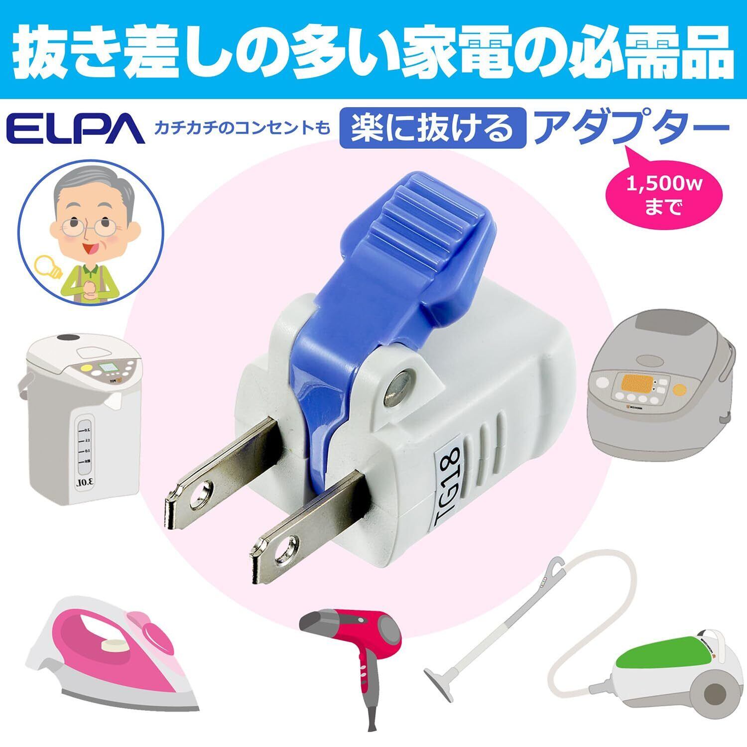 エルパ(ELPA) 楽に抜けるアダプター コンセント 125V 1500wまで アダプター 15A RTP-303B(W)