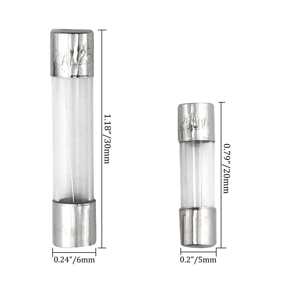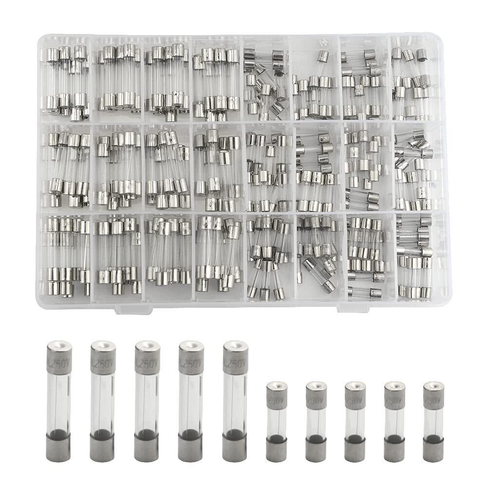 パッケージ数量:240個(12タイプ5x20mm + 12タイプ6x30mm)、これらのガラスヒューズは、さまざまなアンペア値を分離して使いやすくするために、透明なプラスチックの箱にパッケージされています。