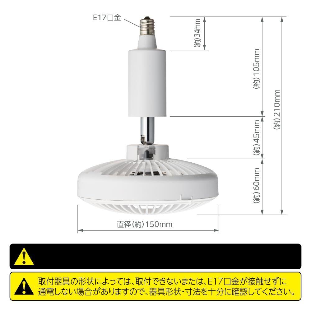 工具不要、かんたん取り付け。口金E17の器具であれば、電球を取り付ける要領で簡単に取り付けできます。工具やネジも使う必要がありません。お手入れ簡単。ファンガードは簡単に外す事ができて掃除が簡単です。(羽根は外すことができません)