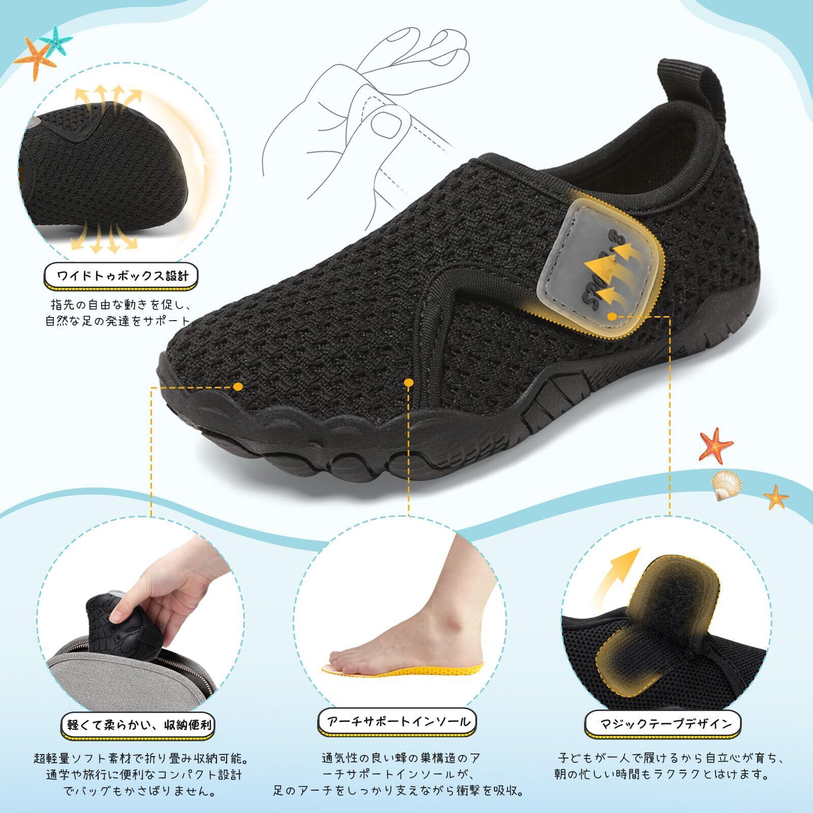 [Ulogu] ウォーターシューズ キッズ マリンシューズ 女の子 男の子 サンダル スイムシューズ アウトドア 子供靴 水陸両用 マジックテープ メッシュ 軽量 滑り止め つま先 保護