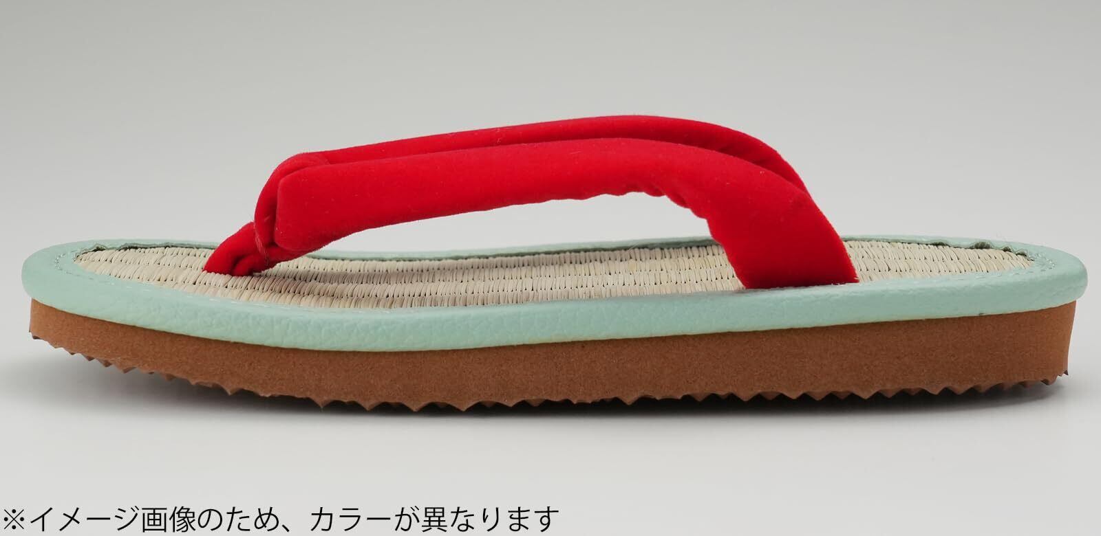 素材・材質:鼻緒/(基布)レーヨン・(フロッキー)ナイロン、鼻緒芯(紐)/ポリプロピレン・ナイロン・ポリエステル、中底(上部)/天然い草、底材/ゴム底、パイピング部/PVC