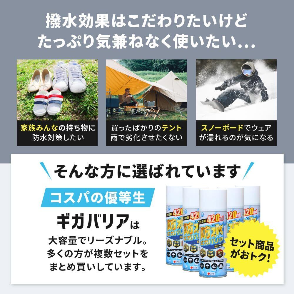 アウトドア 強力撥防水スプレー420ml ギガバリア 大容量 フッ素 靴 スニーカー 衣類 国産 ヌバック 革 キャンバス 起毛 スキーウェア スノボウェア 傘 革用 バッグ