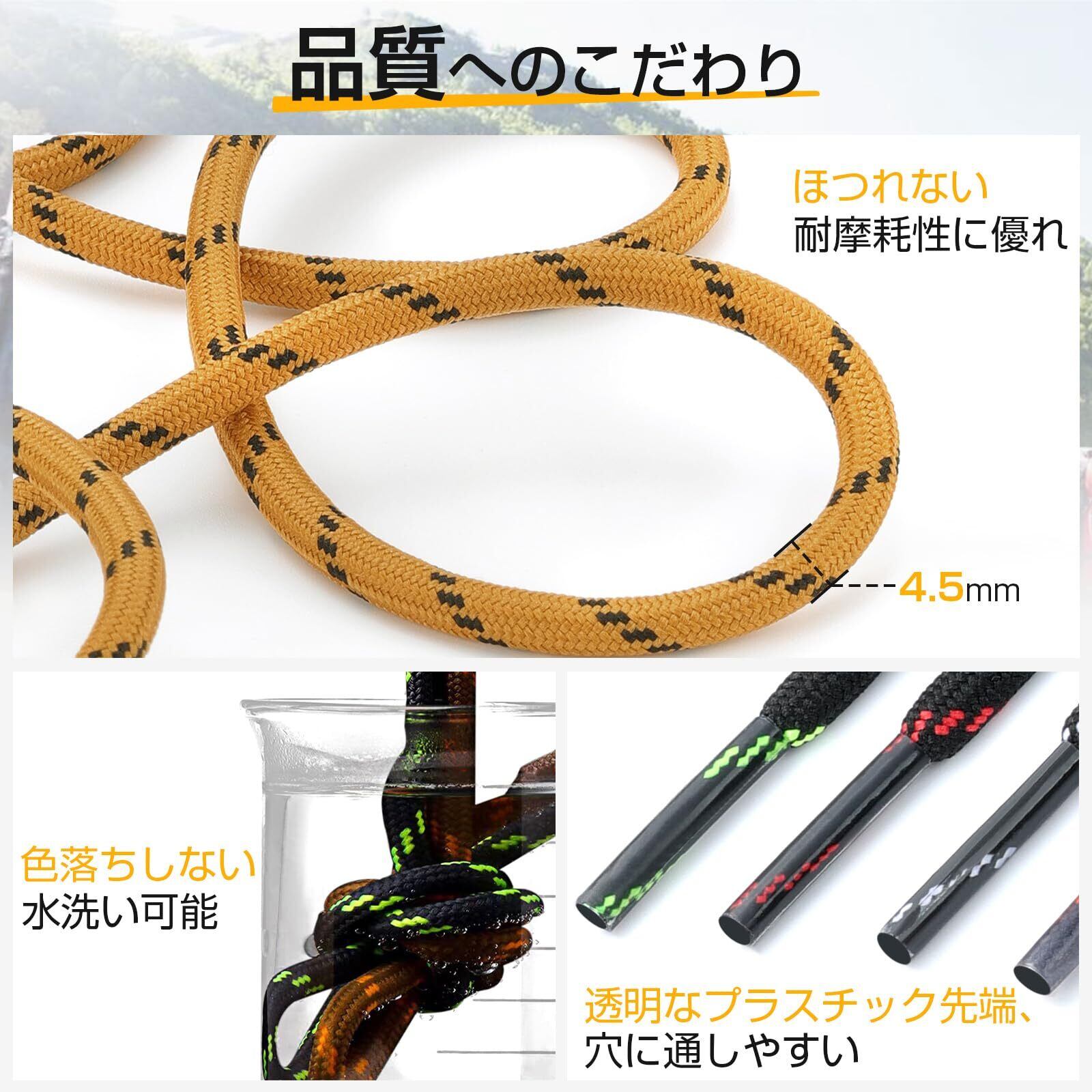 [Puzeam] 2足分(4本) 靴紐 丸ひも 丸型 耐久性 アウトドア 登山靴 スニーカー ハイキング 4.5mm 100cm 110cm 120cm 130cm 140cm 150cm 160cm 180cm 16色