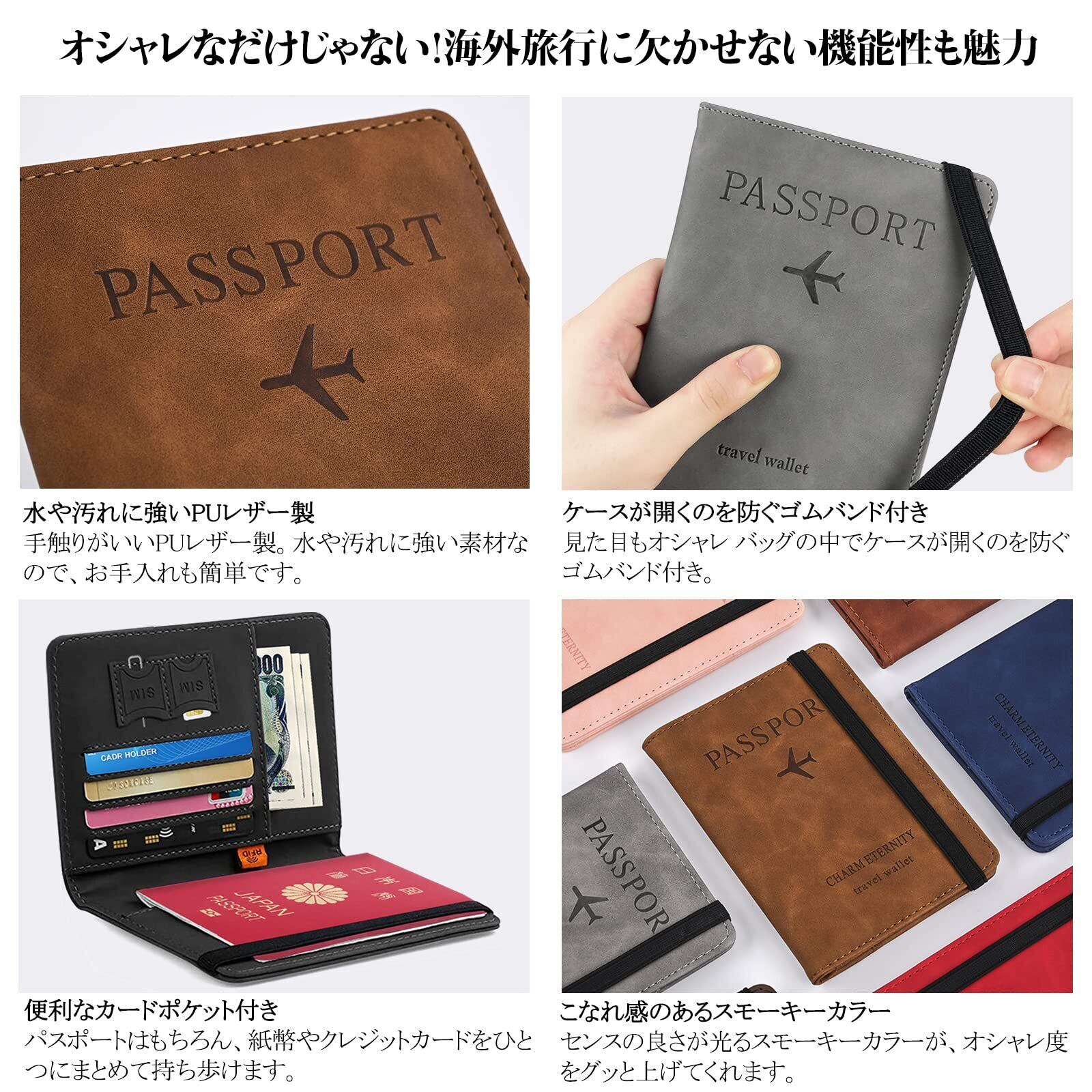 [Hueapion] パスポートケース スキミング防止 パスポートカバー 多機能収納ポケット パスポート カードケース ラベルウォレット 高級PUレザー 軽量 コンパクト おしゃれ 海外旅行 旅行用品 透明パスポートカバー付き (グレー)