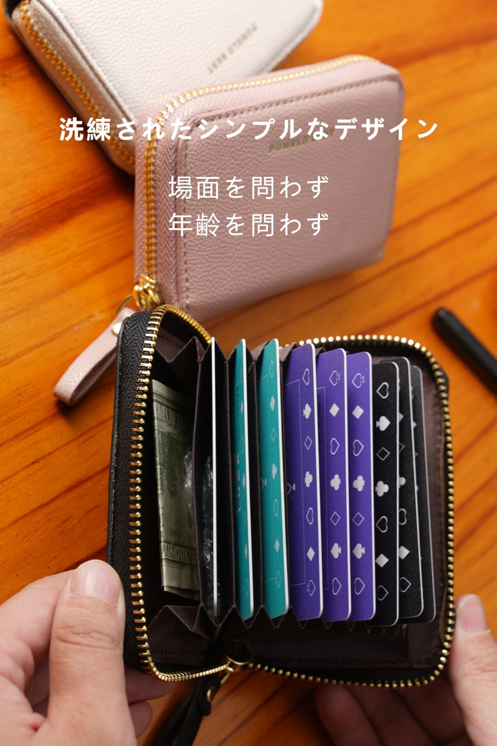 【大容量 で使いやすい ジャバラ 式】最大180度開くじゃばら式で、カードが一目で見やすく取り出しやすい。9つのカードポケットと2つのワイドポケットで最大22枚収納可能。大きく開いて見やすく、取り出しやすい。