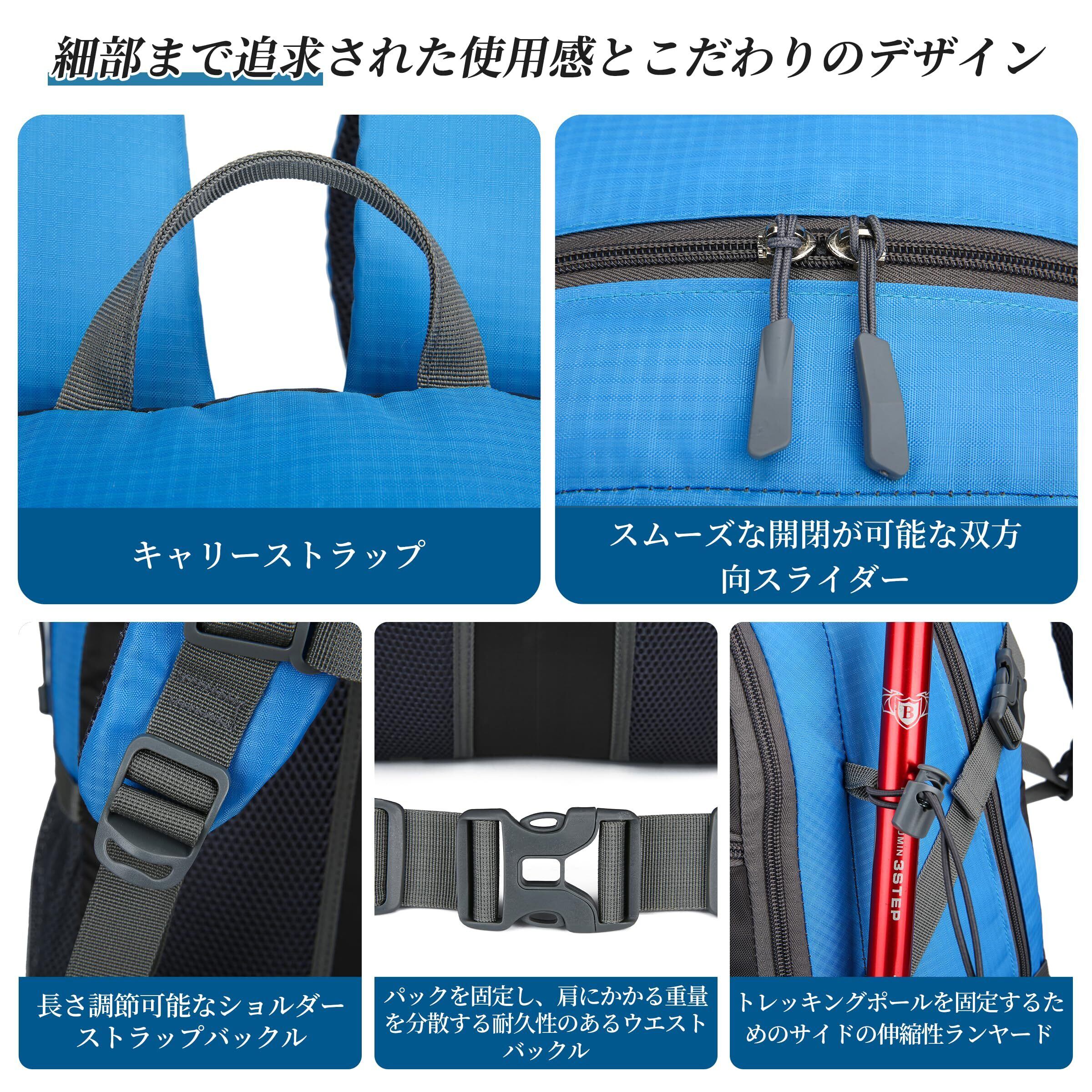 【防水&耐久性】バックパックは防水ナイロン素材で作られており、防水性と汚れに強いです。水をかけても中に浸み込まずに玉になって表面を転がり落ちるので、 突然の雨にも安心です。(注意:登山 リュックは完全防水ではありません、雨が激しく降るとジッパーから水が入る場合があります)、また、バックパックは速乾性があり、洗濯後もすぐに乾くので、使い勝手が良いです。 当社の防水 リュックは、高品質の破れにくい素材、SBSジッパー、高強度ファスナーを採用しており、緩みにくく、壊れにくく。耐久性と耐摩耗性を確保しています。 ストレスポイントが補強されているため、重い物を入れても簡単に壊れず、長持ちする耐久性を提供し、ハイキングやキャンプの冒険に最適です。