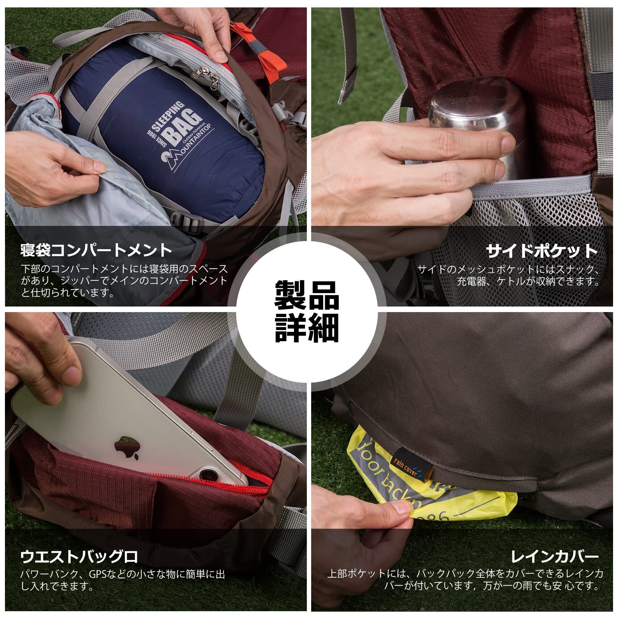 [MOUNTAINTOP] [マウンテントップ] 70L 登山リュック 大容量 キャンプ YKKジッパー使用 バックパック 防水 リュックサック アウトドア 防災ザック 軽量 レインカバー付き 旅行用