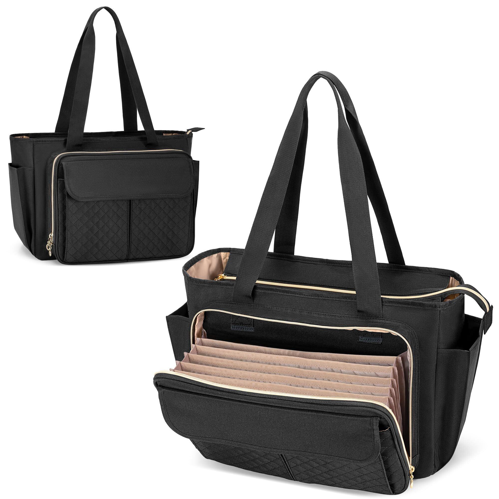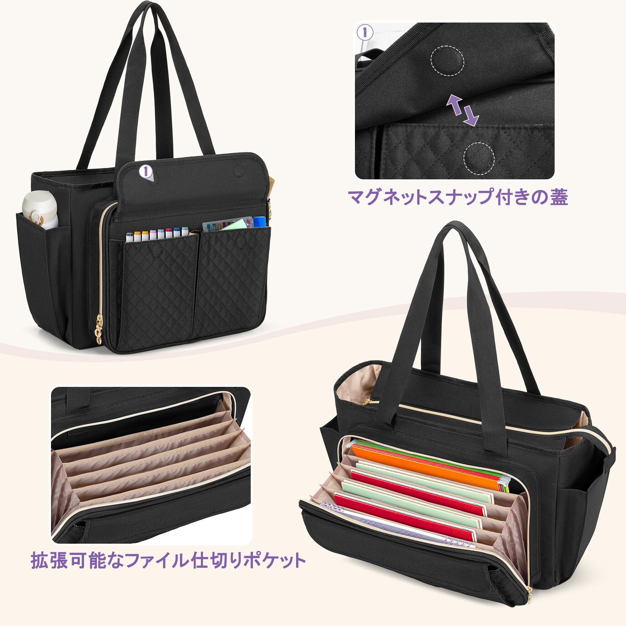[Luxja] 教師バッグ オフィストートバッグ ファイル仕切りポケット付き 15.6インチPC対応 A4 通勤 通学 出張 多機能 ブラック