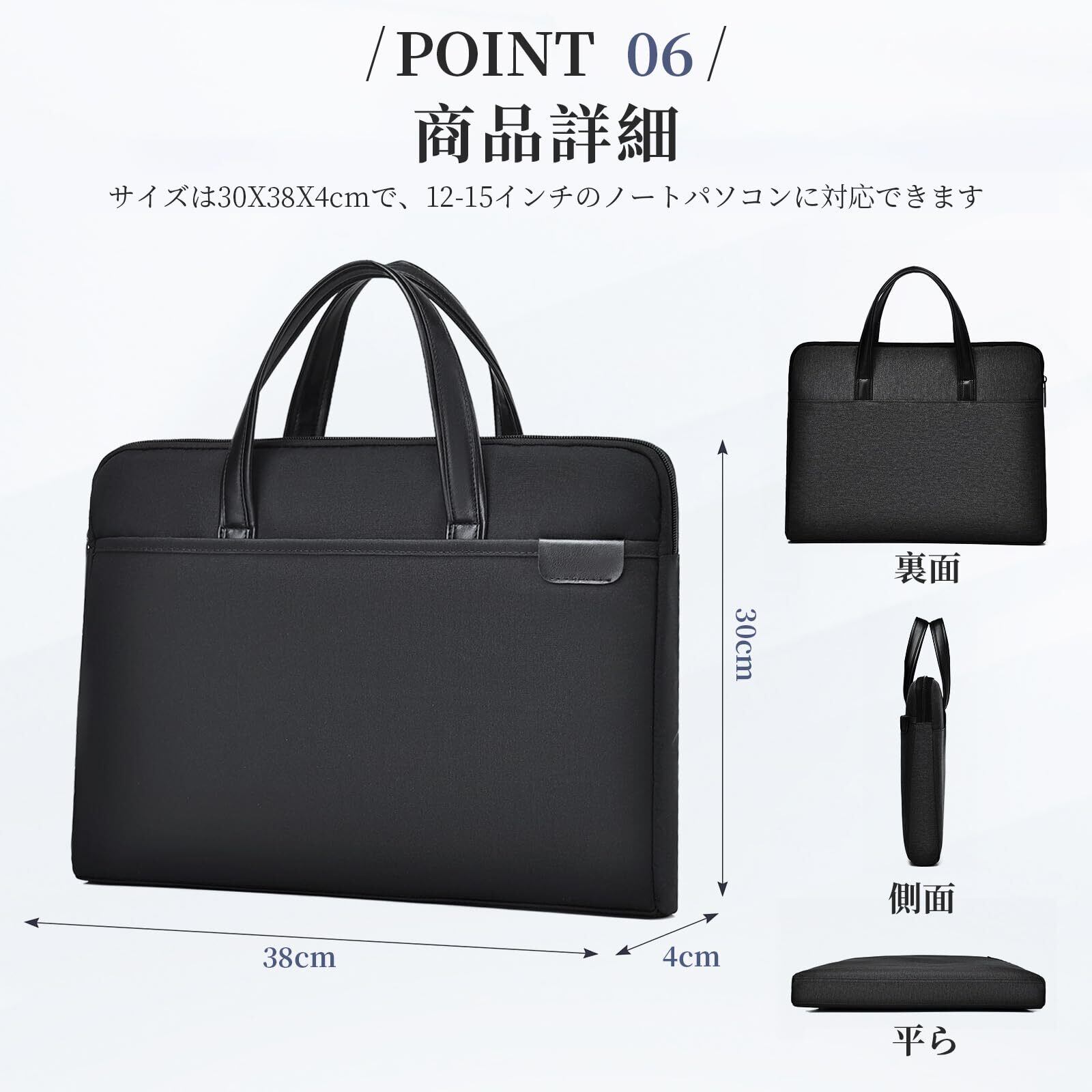 【収納充実】このパソコンバッグはメインバッグ以外に、前後に2つのポケットがあり、マウス、充電器、USBケーブル、メモ帳などを収納するのに十分です。 通勤、出張、通学、日常のお出かけなど様々なシーンで活用できます。