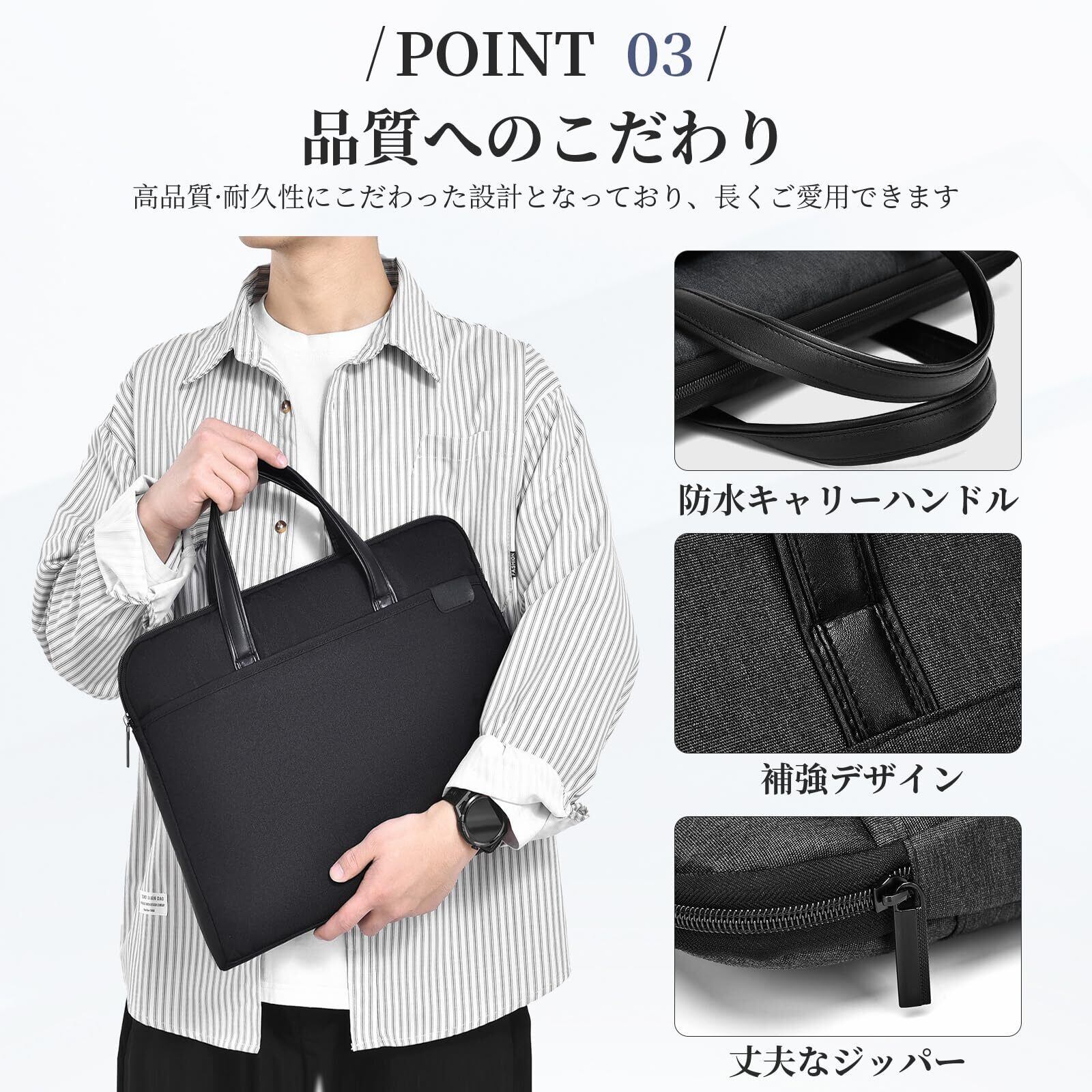 【軽量で便利】重さわずか330gのラップトップ&ノートブックバッグは、持ち運びに便利なハンドル付き。 ビジネスミーティング、旅行、普段使いなど、様々なシーンで活躍します。