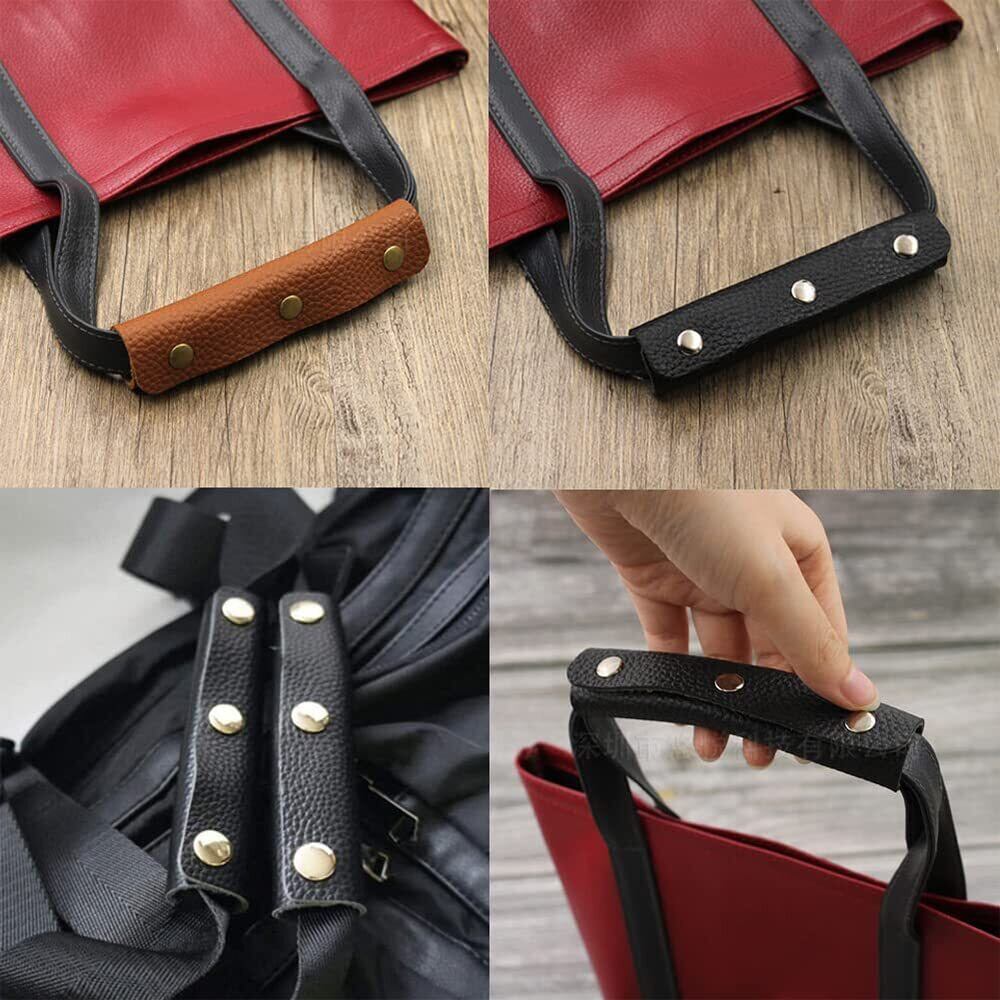 バッグ 持ち手 カバー 革 2枚組 取り外し可能 革 柔らかい グリップ トートバッグ ビジネスバッグ用 防勒 滑り止め 男女兼用 (ブラック)