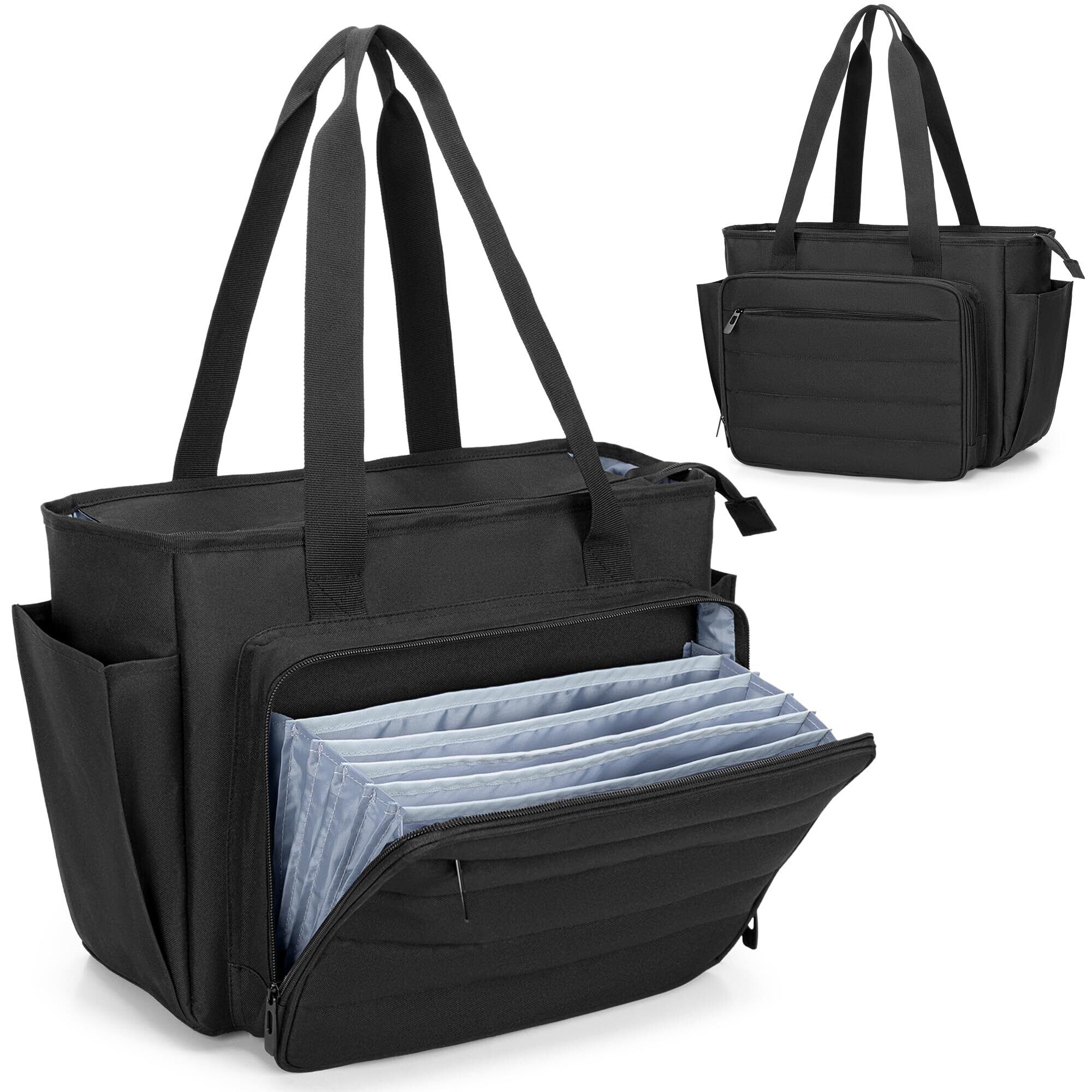 特別なデザイン: フロントコンパートメントは、書類、手紙、A4シート、その他の重要なアイテムを収納できる6つの拡張可能なポケットを備えたアコーディオンスタイルの教師トートバッグです。