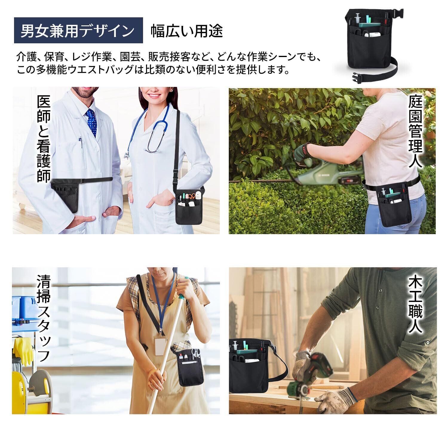 ナースポーチ ウエストポーチ 仕事用 ブラック 看護師 ポーチ 工具ポーチ ナースポーチ ウエストポーチ 作業用ポーチ 多機能ポーチ 文具ポーチ 美容師 ウエストポーチ ベルトポーチ 作業用 小型 防水 ポータブル 耐久性