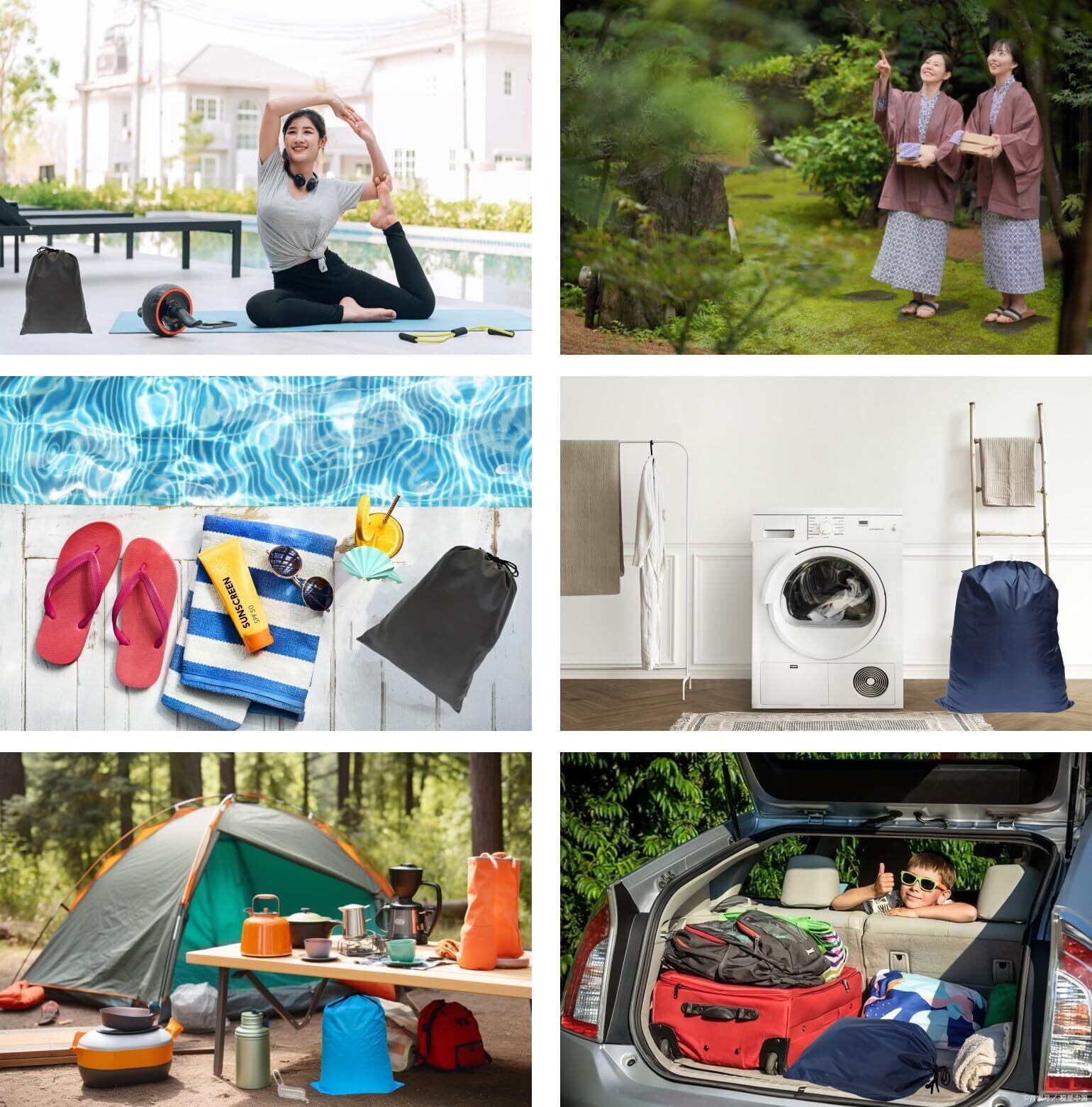 【多機能】RUSUNMの巾着袋は様々な生活シーンで有用であり,使い方が多様である。この巾着袋は特に家庭収納、運動、スポーツ、エクササイズ、キャンプ、温泉、レジャー、旅行、水泳、宿泊、引っ越、洗濯などに特に適しています。