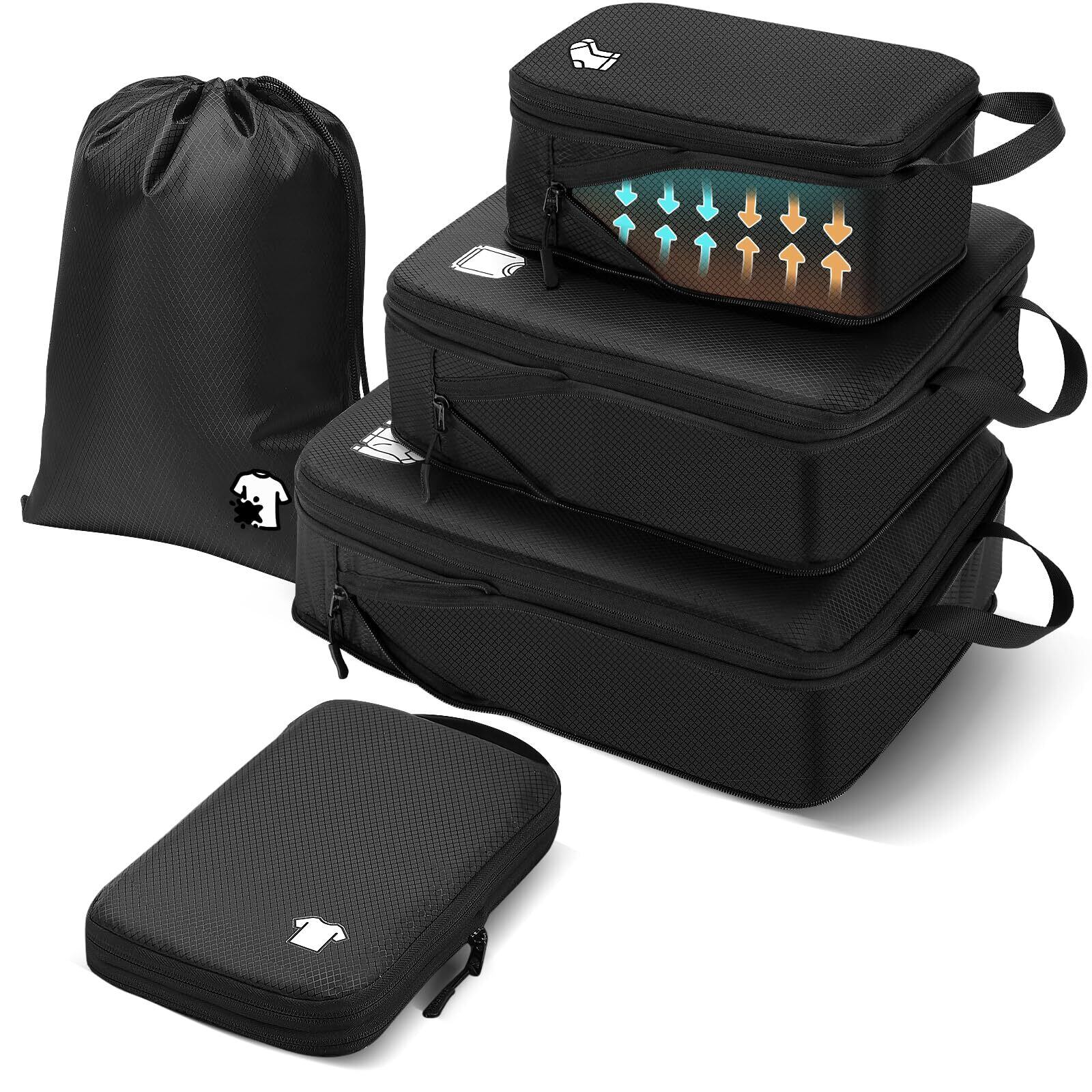 Samfolk 旅行用圧縮袋 トラベルポーチ 旅行圧縮バッグ 8点セット 圧縮ポーチ パッキングポーチ 衣類仕分け 旅行 出張 便利グッズ 大容量 防水 小物入れ トラベルセット 下着収納 巾着袋 スペース節約