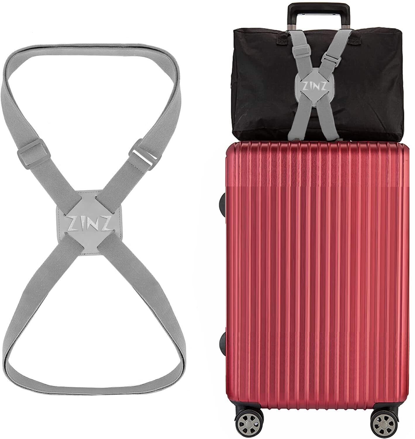 ZINZ 旅行便利グッズ バッグとめるベルト 便利グッズ 多用 調整可能 軽量 荷物用弾力固定ベルト ずり落ち防止 グレー