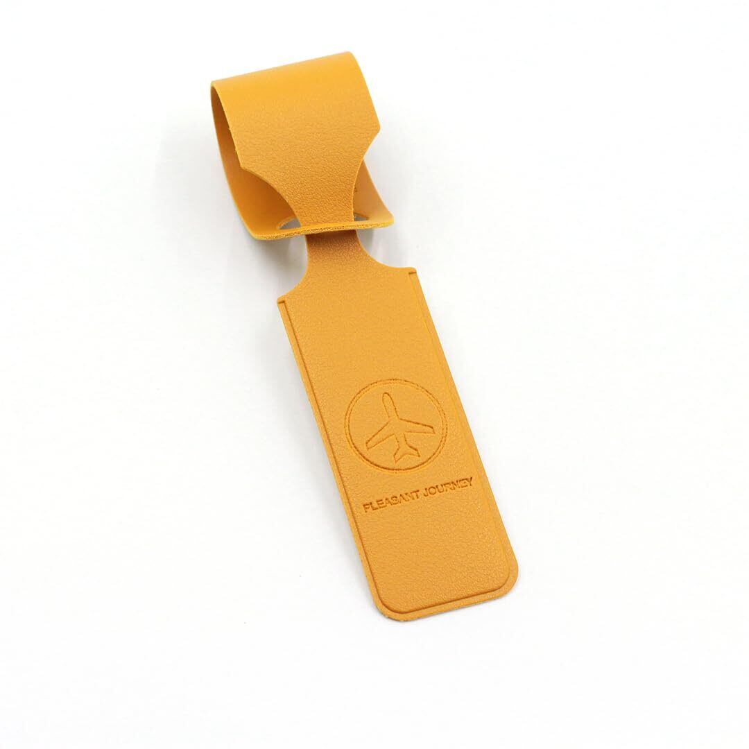 荷物専用 レザー荷物タグ 旅行タグ バッグ用ネームタグ タグ スーツケース タグ 名札 タグ スーツケース ベルト付き バッグ用タグ シンプル おしゃれ 旅行 出張 海外 紛失防止 紛失対策 超軽量 柔軟 防水 耐用 (ターメリック)