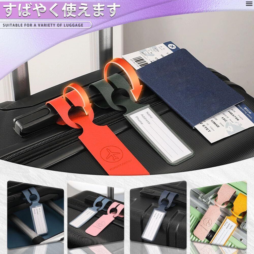荷物タグ スーツケースタグ バッグ用ネームタグ 旅行タグ ラゲッジタグ ネームタグ ネームラベル スーツケース 番号札 ラゲージタグ スーツケース名札 旅行手荷物 ラベル 紛失防止 取り外し簡単 超軽量 耐用 柔軟 ラベル名前 旅行用 飛行機用 PU皮製 防水タグ (6色セット)