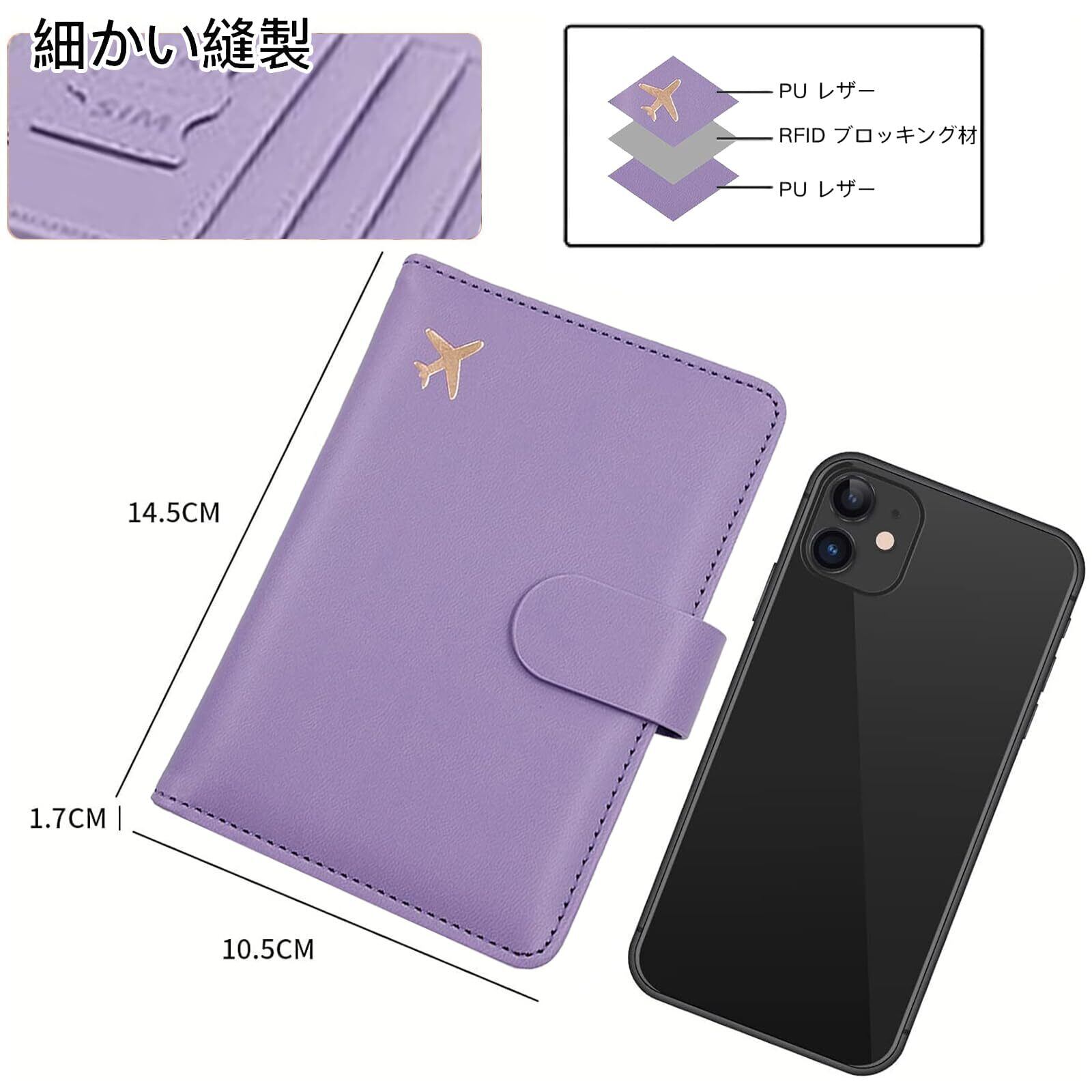 [MHKHPPO] パスポートケース パスポートホルダー パスポートスロット レディース/メンズ可愛いパスポートカバー 防水 Rfid スーツケース 多機能収納ポケット 名刺 クレジットカード 航空券 エアチケット ッド パスポートバッグ ポーチ (紫)