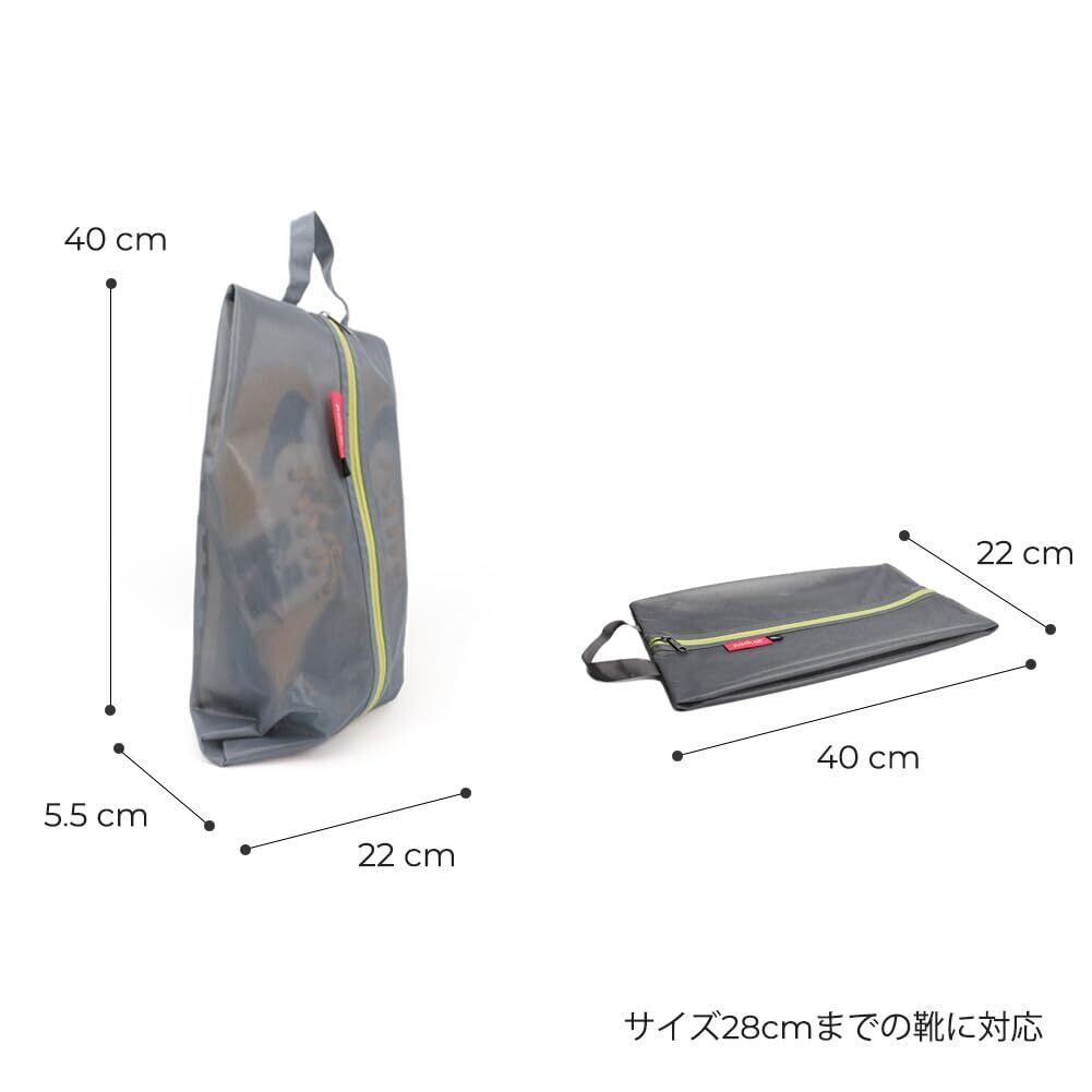 サイズと色選び可能:通常版は40cmx22cmx5.5cm、拡大版は45cmx25cmx5.5cm。5色のシューズバッグから好きな色を選べます。男女問わずご利用できます。