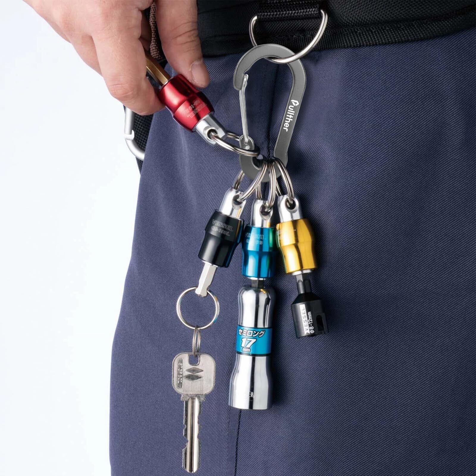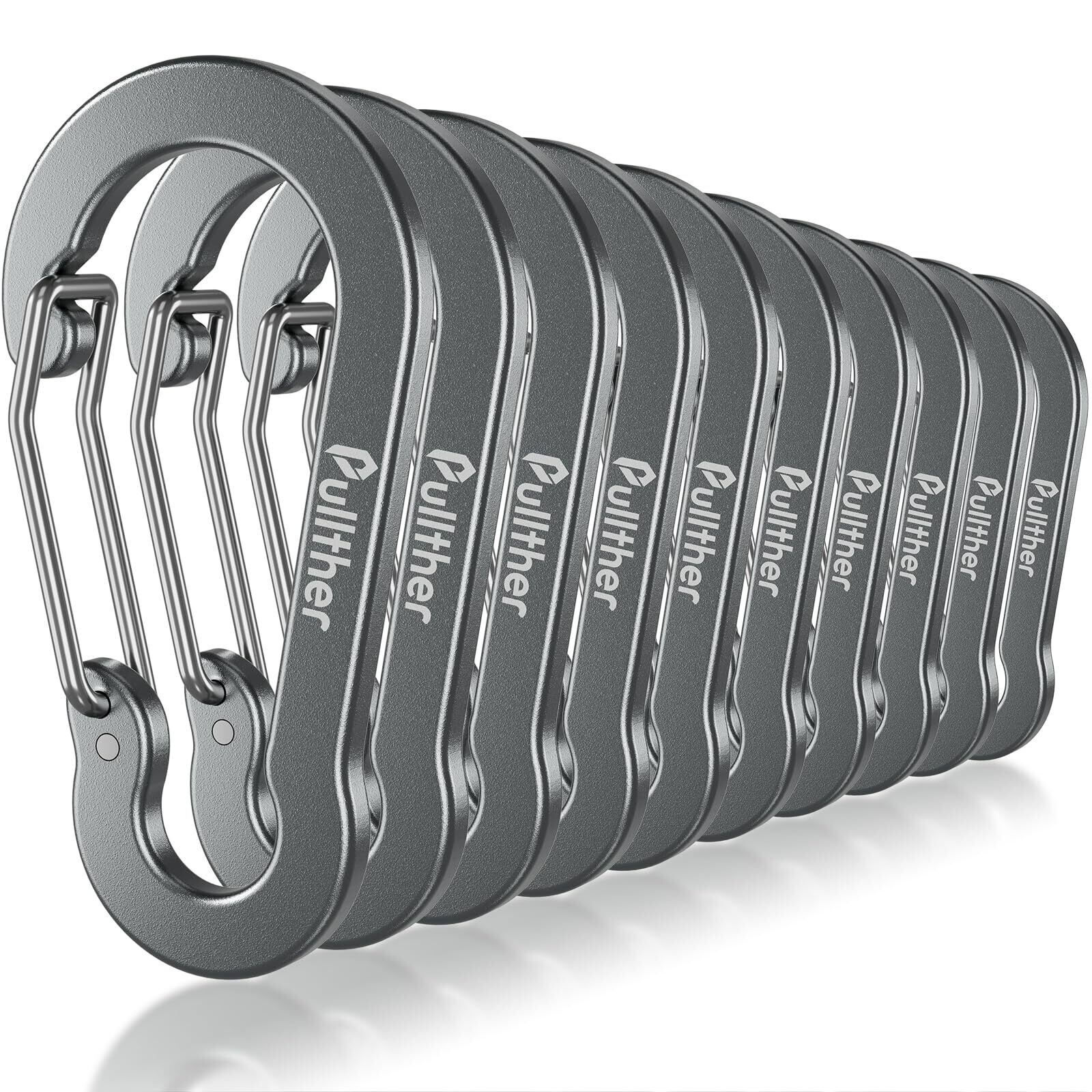 Pullther カラビナ 大型 錆びない おしゃれ 超軽量 アルミ製 アウトドア 鍵用 7cm 高強度 10個入り